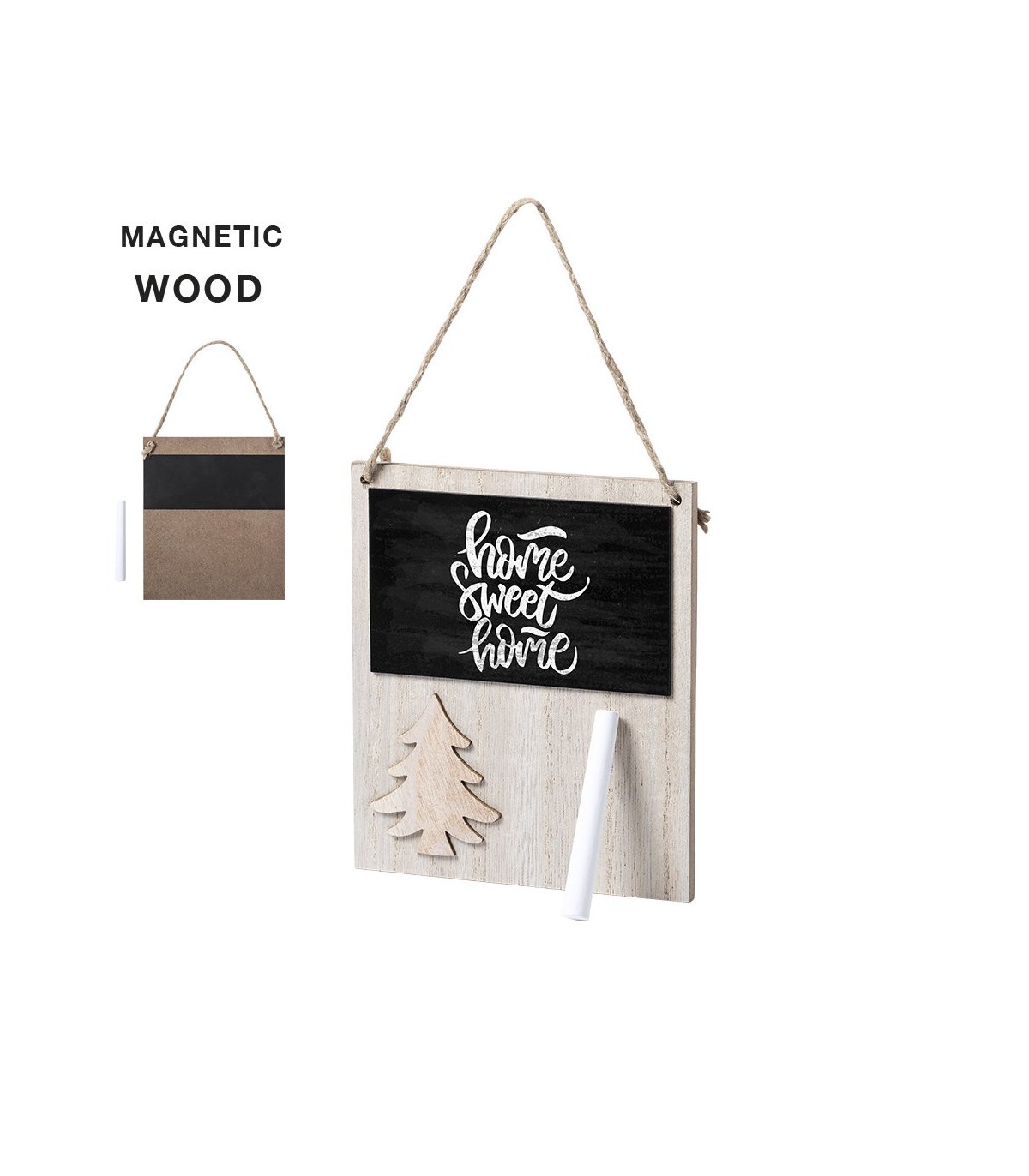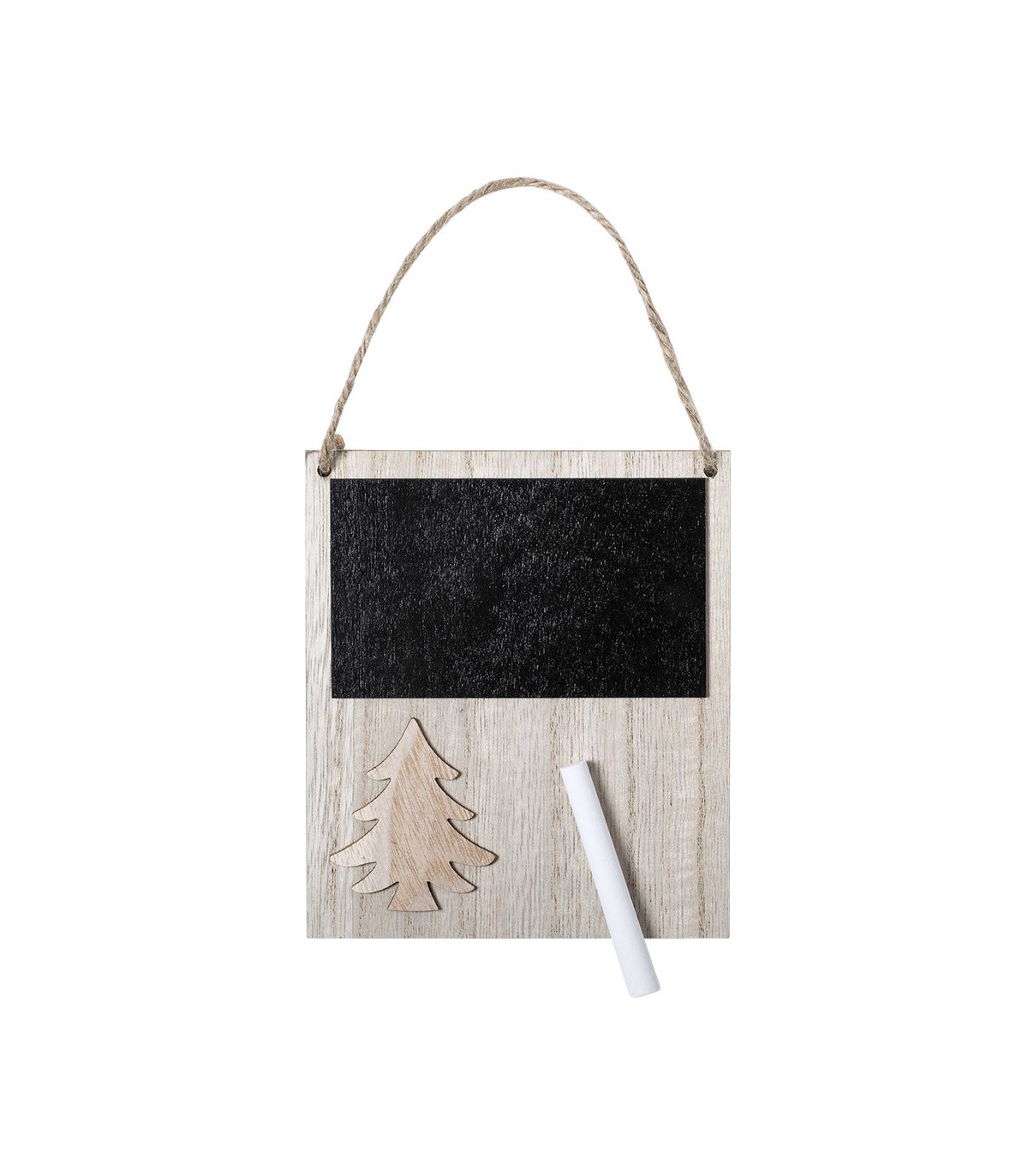 Adornos navideños ecológicos en madera con pizarrón, diseño original de árbol muy originales para personalizar y regalar en estas navidades como articulo promocional.