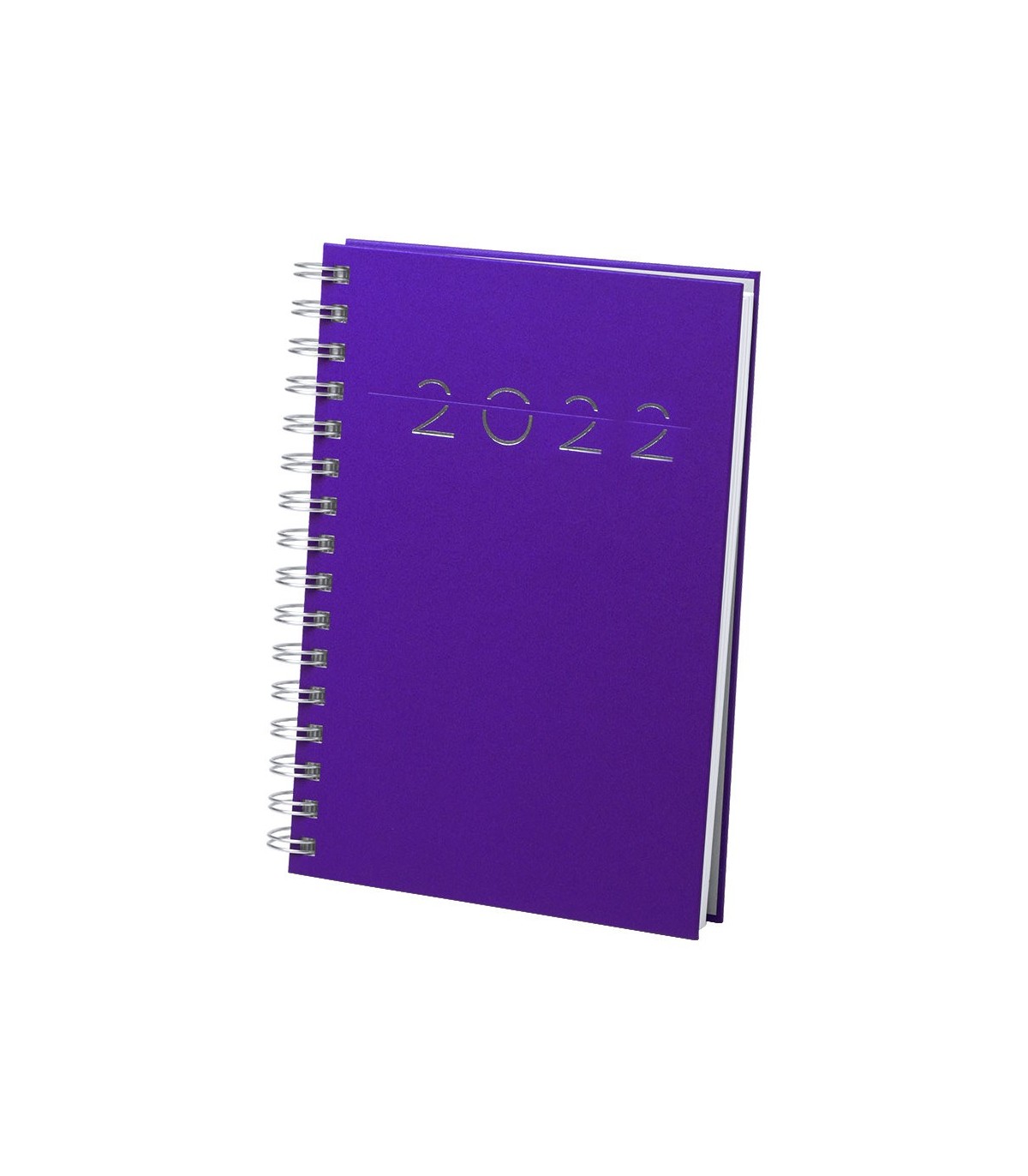 Agenda de anillas tamaño A5, acabada en resistente y suave polipiel de variados colores. Diseño página día. En castellano, gallego, euskera y catalán.