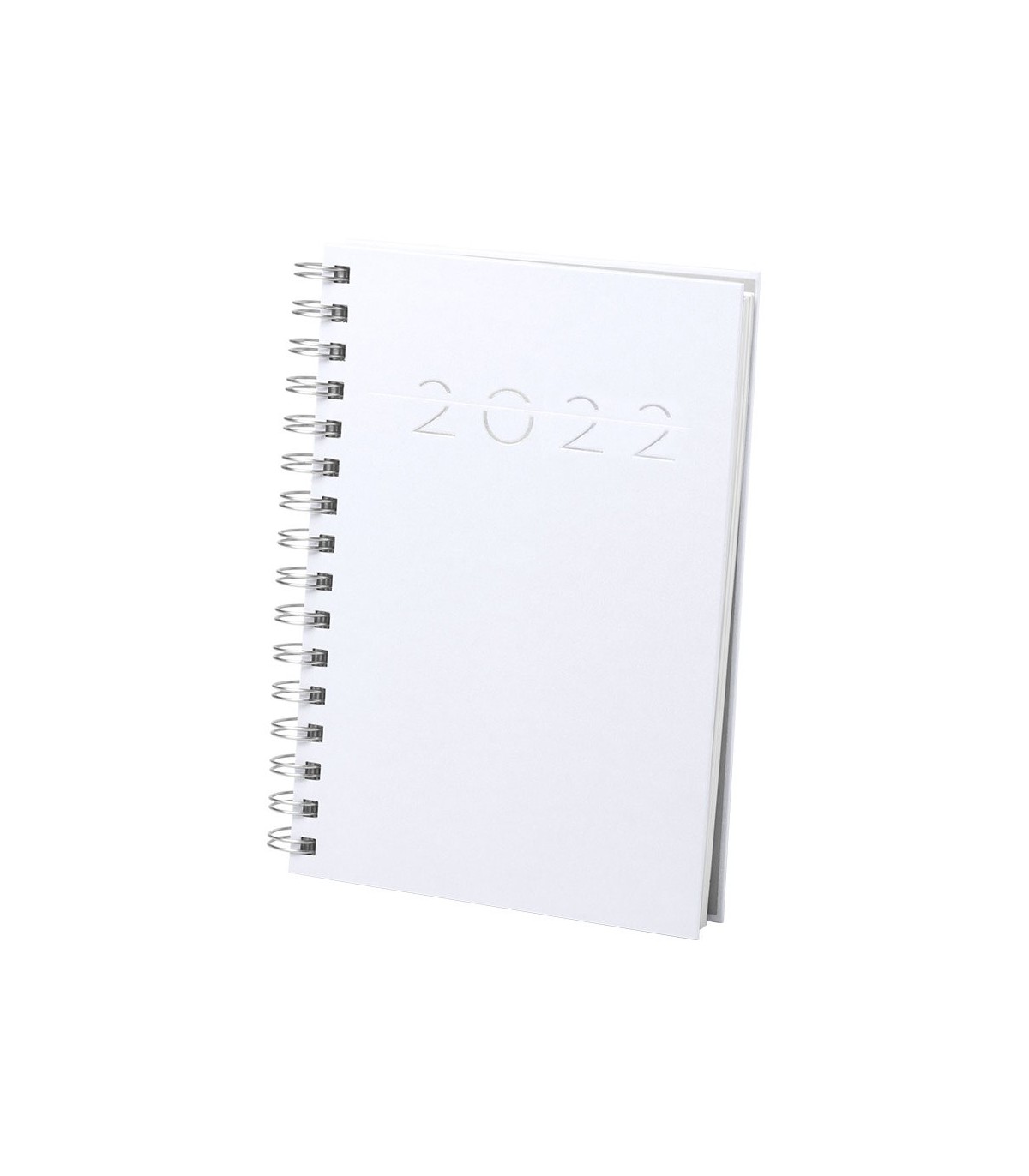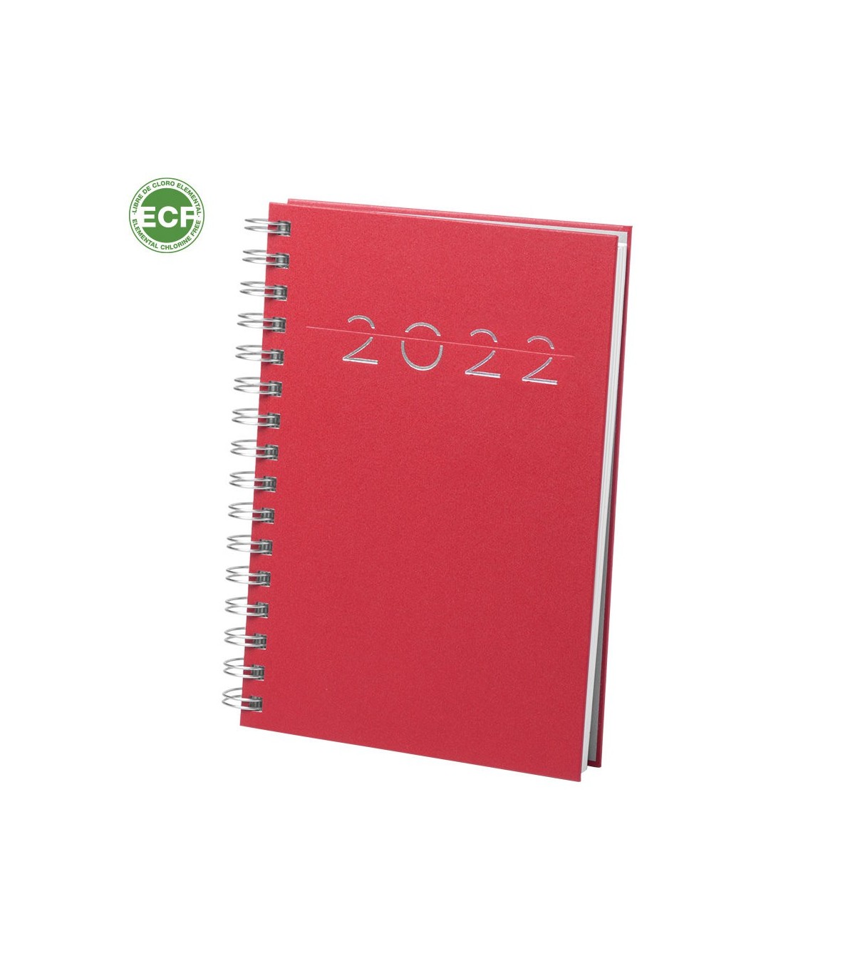 Agendas de anillas tamaño A5, acabado en polipiel, para personalizar con tu logo de empresa. Diseño página día. En castellano, gallego, euskera y catalán.