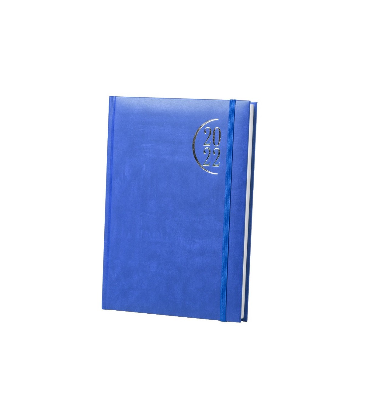 Agenda de tamaño A5 acabada en resistente y suave polipiel con acolchado, elástico de sujeción a juego y de variados colores. Diseño página día. En castellano, inglés, francés, italiano, portugués, gallego, euskera y catalán.