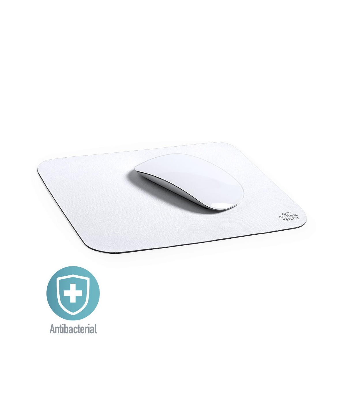Alfombrillas de ratón personalizadas, son antibacterianas, forma rectangular en material poliéster de acabado blanco, con base antideslizante en silicona de 1,5mm de grosor.