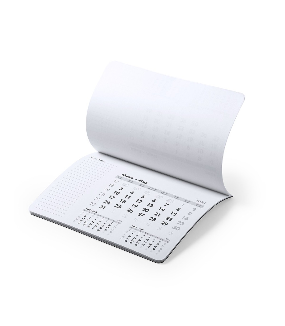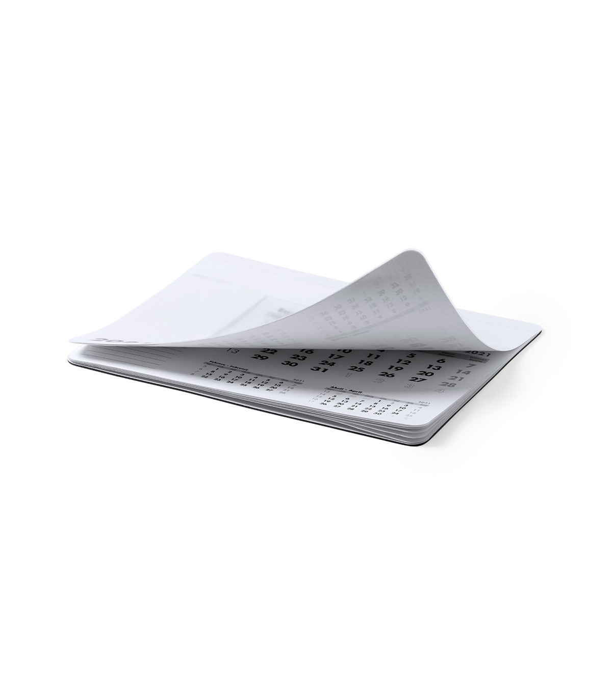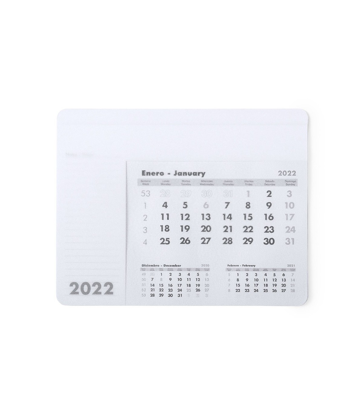 Alfombrilla calendario de suave acabado en PVC. Diseño mes en curso/mes anterior/mes siguiente, con espacio para anotaciones. Base acolchada antideslizante.