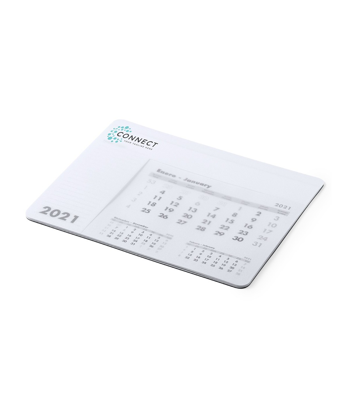Alfombrillas de ratón publicitarios grabadas con logo para regalos de empresa fabricadas de pvc y papel 12 meses.