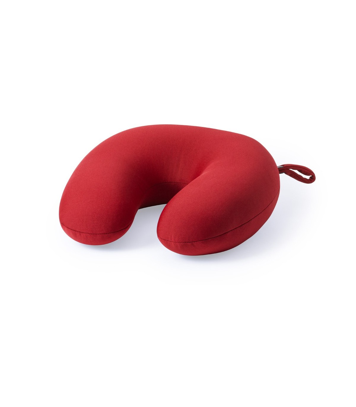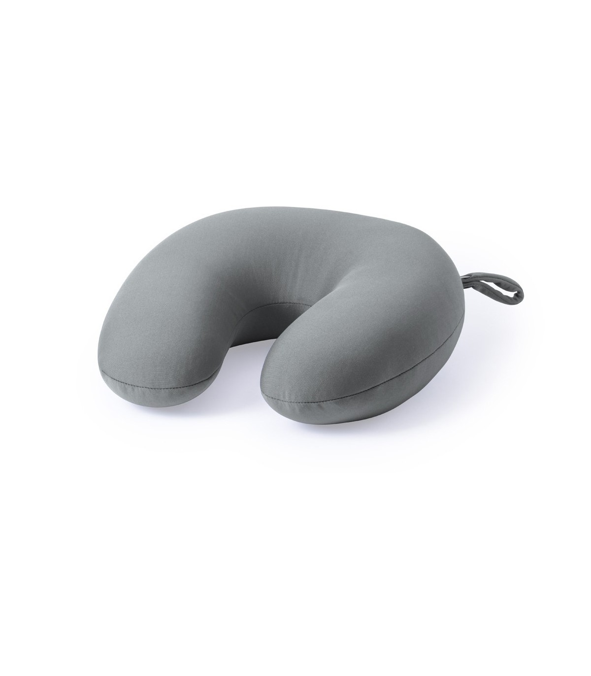 Almohadilla de poliéster para el cuello con cuerpo de suave y con relleno de bolitas y cinta de transporte para personalizar con logo y dar como articulo promocional.