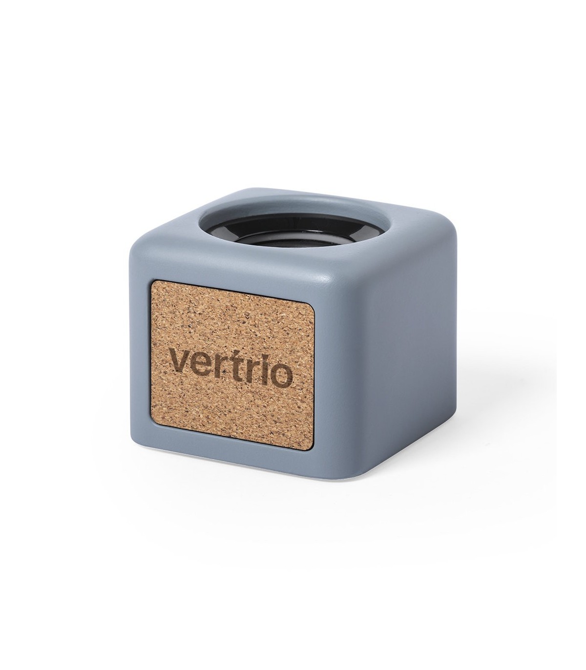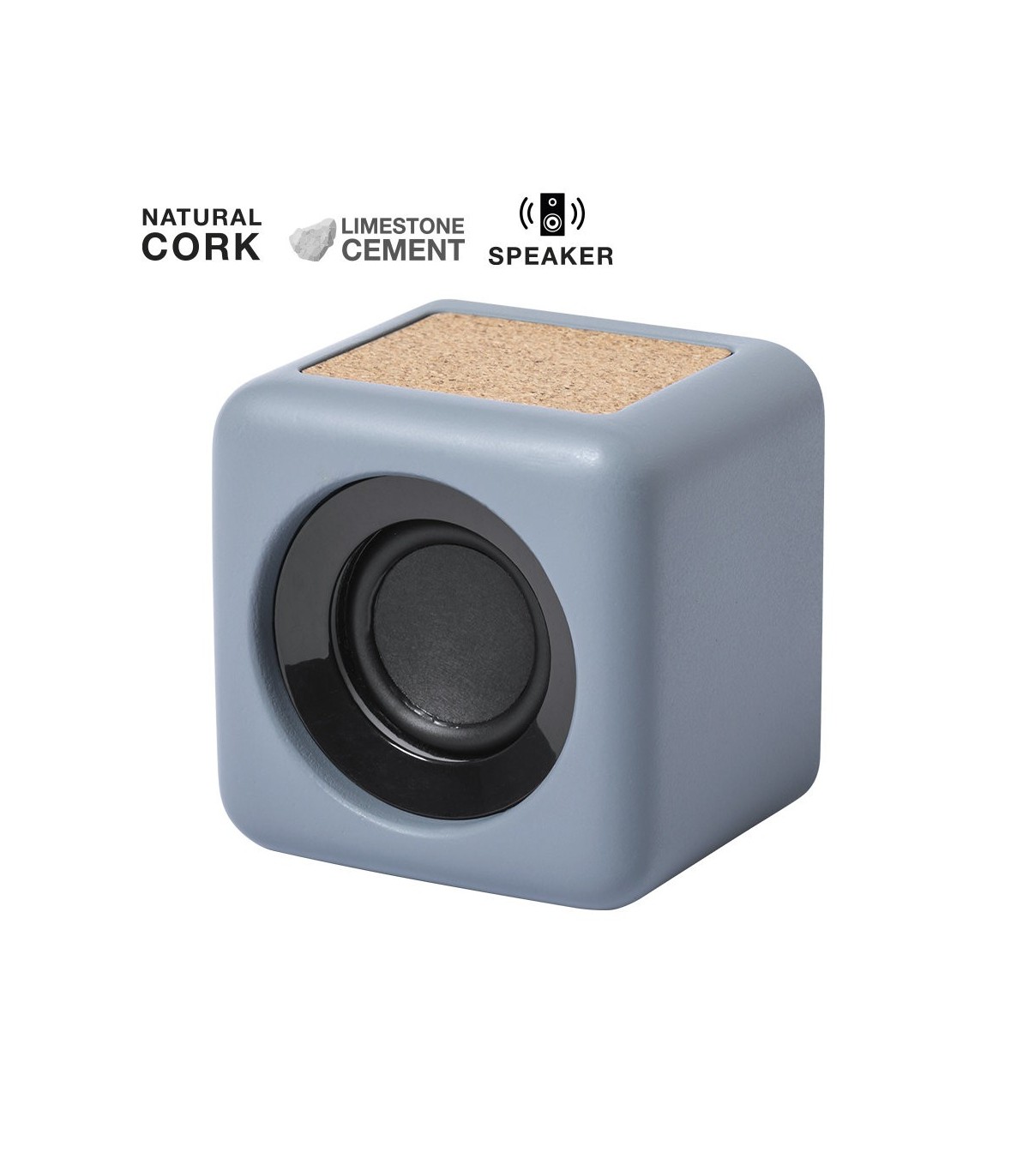 Altavoz Bluetooth® de línea ecológica en combinación de corcho natural y cemento de piedra caliza, un conglomerante formado por la mezcla de materiales naturales, principalmente piedra caliza molida y agua, obteniendo un material de gran consistencia y durabilidad. De tamaño compacto, se convierte en un complemento perfecto para el smartphone. Conexión Bluetooth® 5.0 y 3W de potencia. Incluye cable de carga micro USB y viene presentado en atractiva caja de diseño eco.