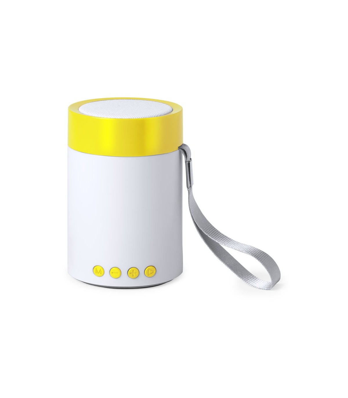 Altavoz de conexión Bluetooth® de diseño bicolor, con detalles a juego y asa de transporte. Ofrece 3W de potencia, tiene función de manos libres y función radio FM. Reproducción mediante USB, ranura para tarjetas micro SD de hasta 32GB de capacidad y entrada auxiliar de línea mediante conexión jack de 3,5mm, con base antideslizante. Compatible con iOS y Android, incluye cable de carga micro USB y además está disponible en una extensa gama de colores. Presentado en atractiva caja de diseño.