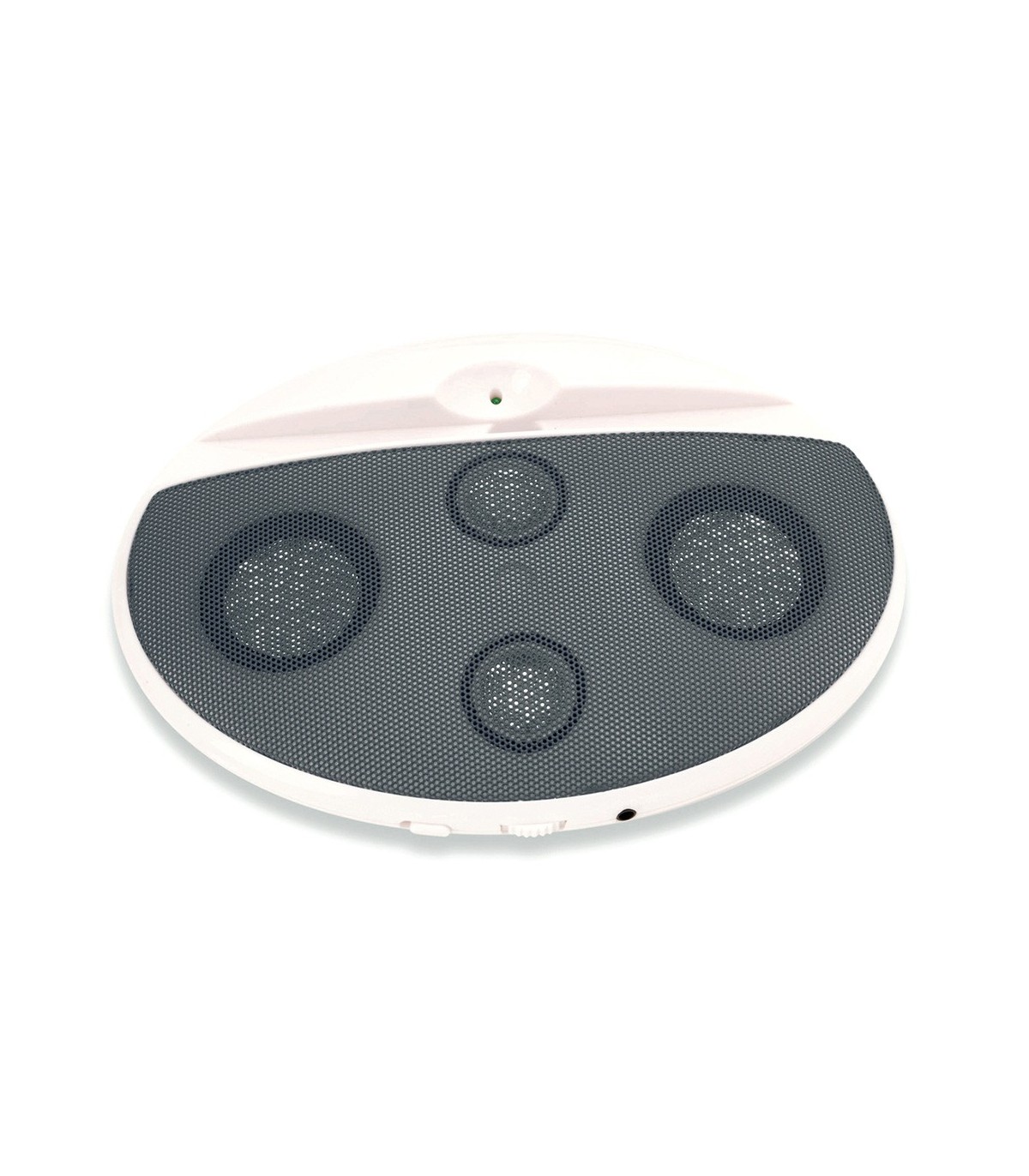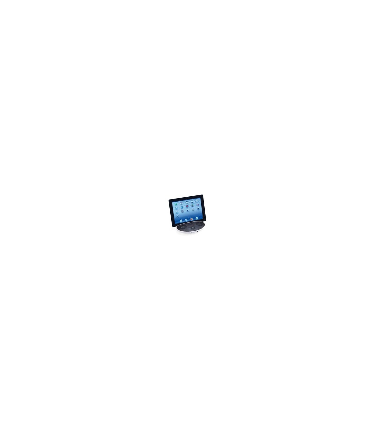 Altavoz compacto de diseño bicolor. Convertible en soporte para dispositivo móvil, ofrece 2W de potencia, botón de encendido/apagado, control de volumen y reproducción mediante conexión jack de 3,5mm. Alimentación a pilas: 4xAAA no incluidas.