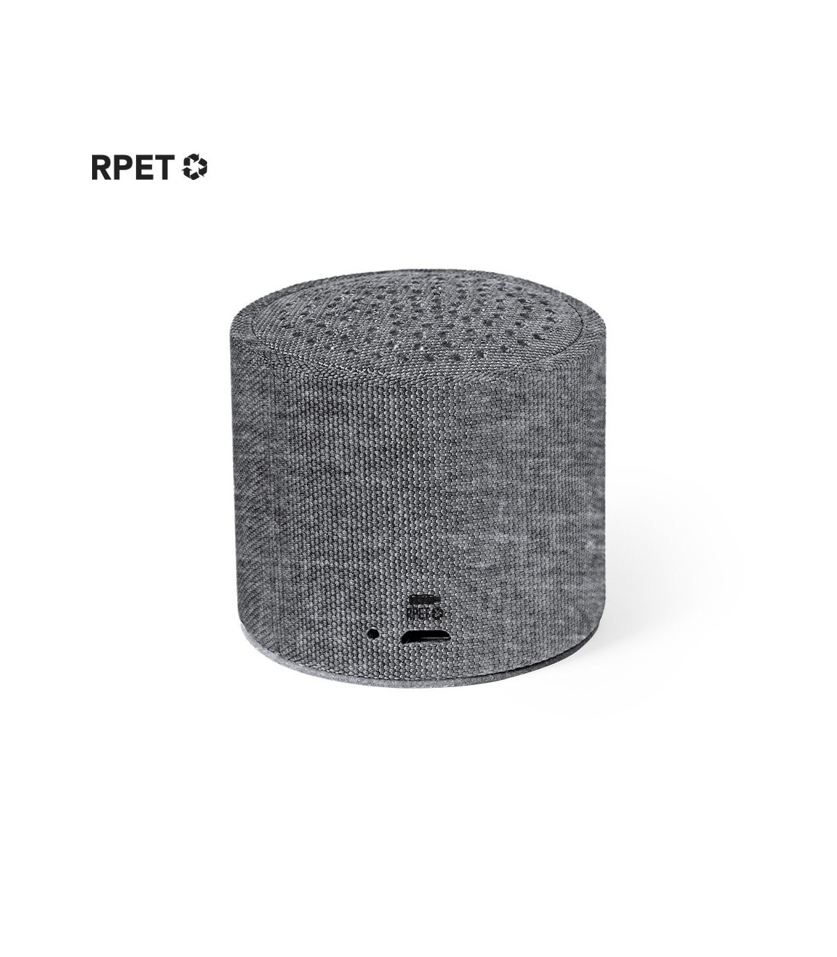 Compacto altavoz de elaboración ecológica y conexión Bluetooth® 5.0. Carcasa fabricada en poliéster RPET, hecho a partir de plástico reciclado, para así fomentar la reutilización de residuos plásticos y ayudar a la sostenibilidad del planeta. 3W de potencia, compatible con iOS y Android. Incluye cable de carga micro USB y base antideslizante. Presentado en atractiva caja de diseño eco. Con distintivo RPET sobre el artículo.