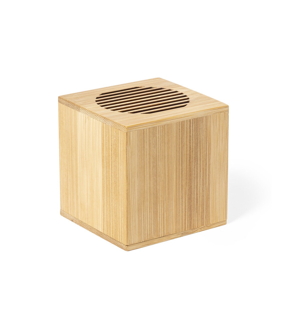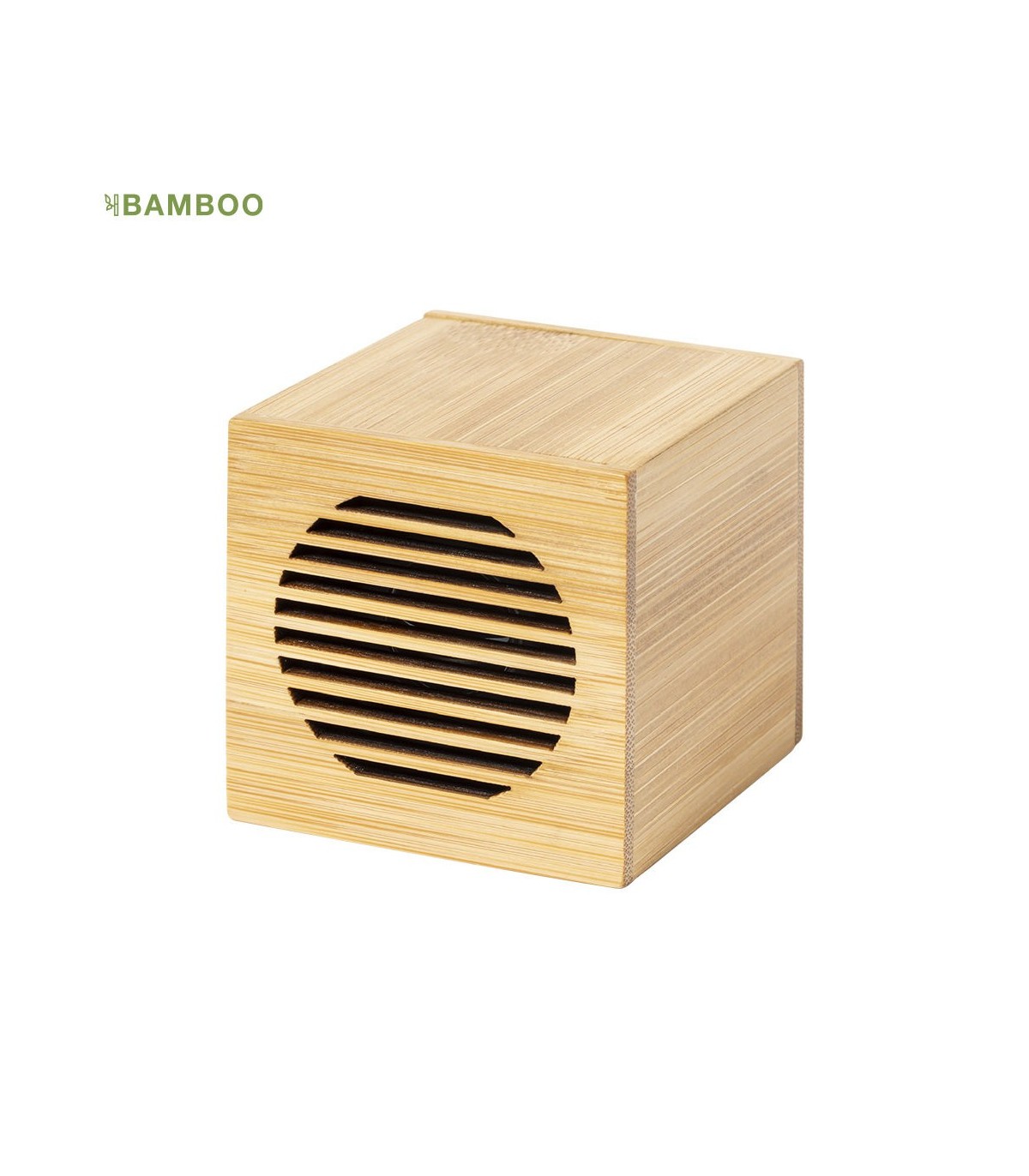 Altavoz inalámbrico con conexión Bluetooth® 5.0 y 3W de potencia, con batería de litio. Fabricado en bambú Recargable mediante cable Micro USB -incluido-. Amplia superficie de marcaje y presentado en atractiva caja de diseño eco. Disponible manual de instrucciones en español e inglés.