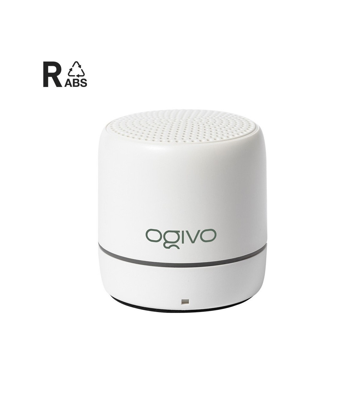 Compacto altavoz de elaboración ecológica con conexión Bluetooth® 5.0 y batería de litio. Carcasa en ABS reciclado (RABS) y con certificación RCS, que garantiza el origen reciclado del mismo. 3W de potencia, compatible con iOS y Android. Incluye cable de carga micro USB y base antideslizante. Presentado en atractiva caja de diseño eco. Incluye manual de instrucciones en español e inglés.