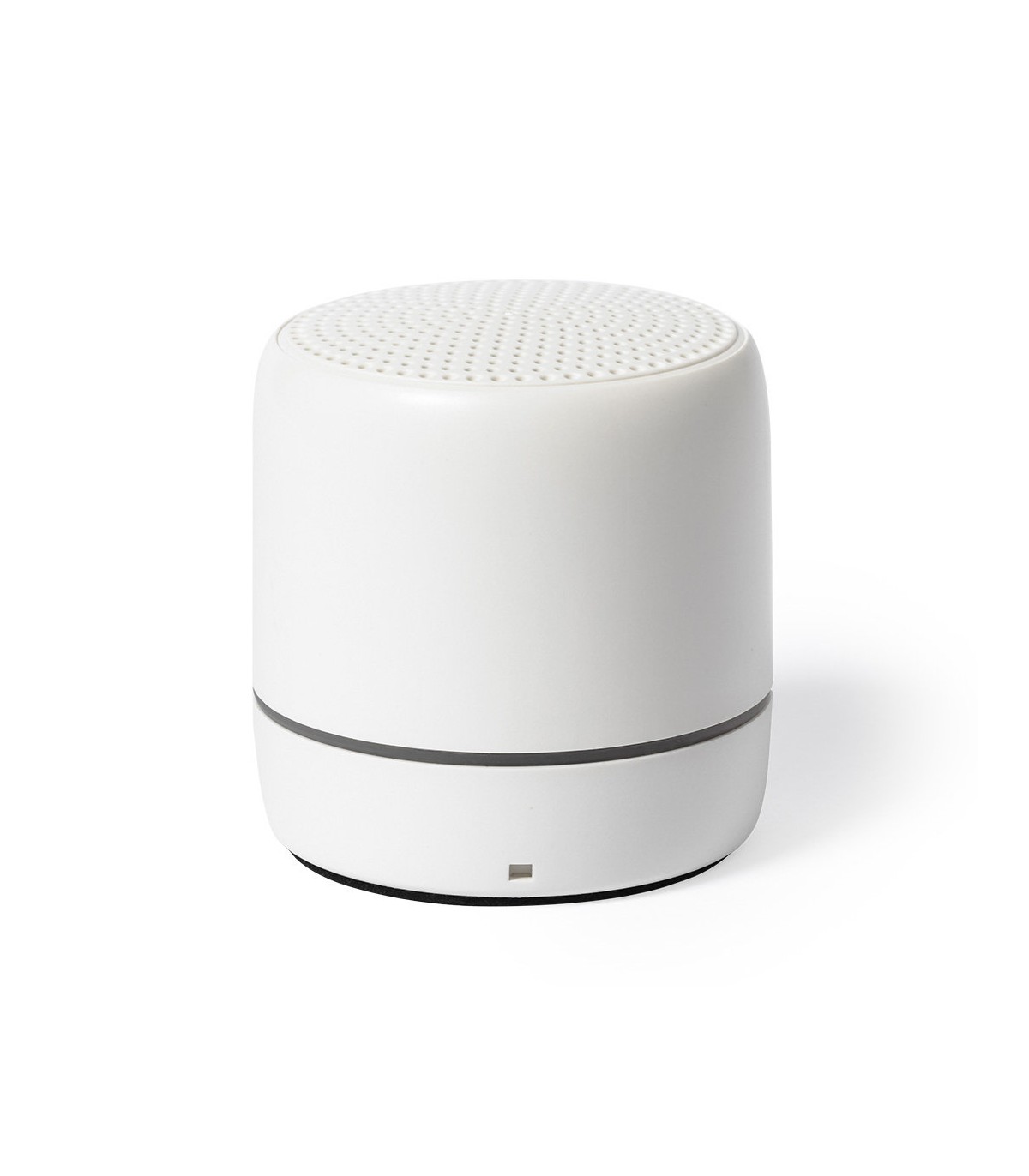 Altavoces ecológicos personalizados con conexión Bluetooth® 5.0 y batería de litio. Incluye cable de carga micro USB y base antideslizante.