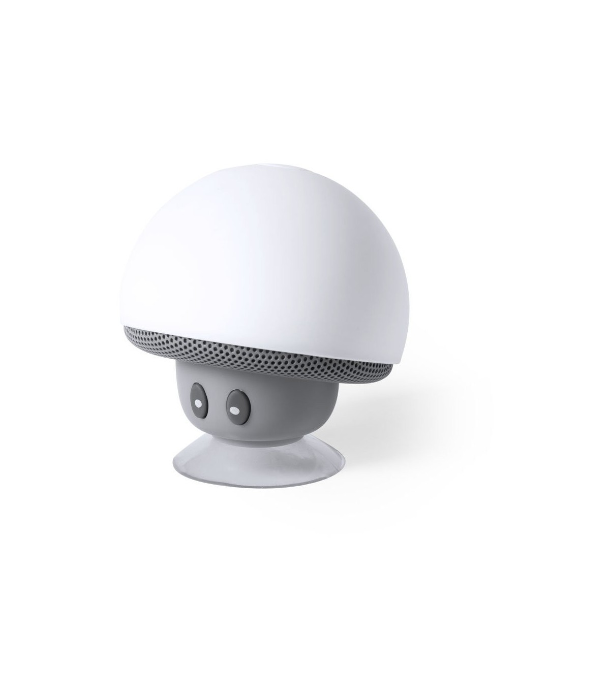 Altavoz de original diseño seta con función soporte para móvil. Conectividad Bluetooth® 5.0, con 3W de potencia y función manos libres. Cuerpo con suave acabado de tacto goma y ventosa de fijación para función soporte. Cable micro USB incluido y presentado en atractiva caja de diseño.