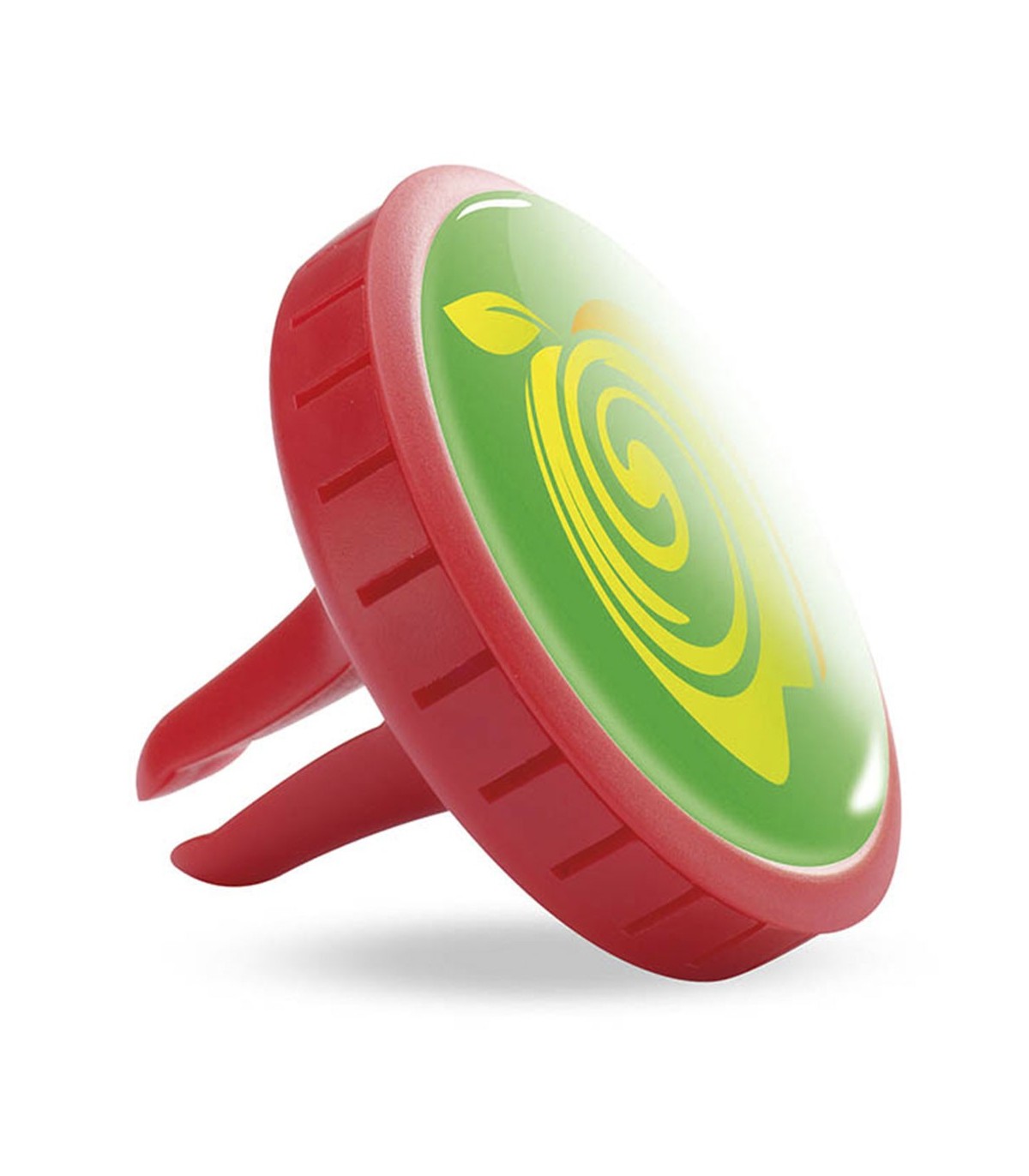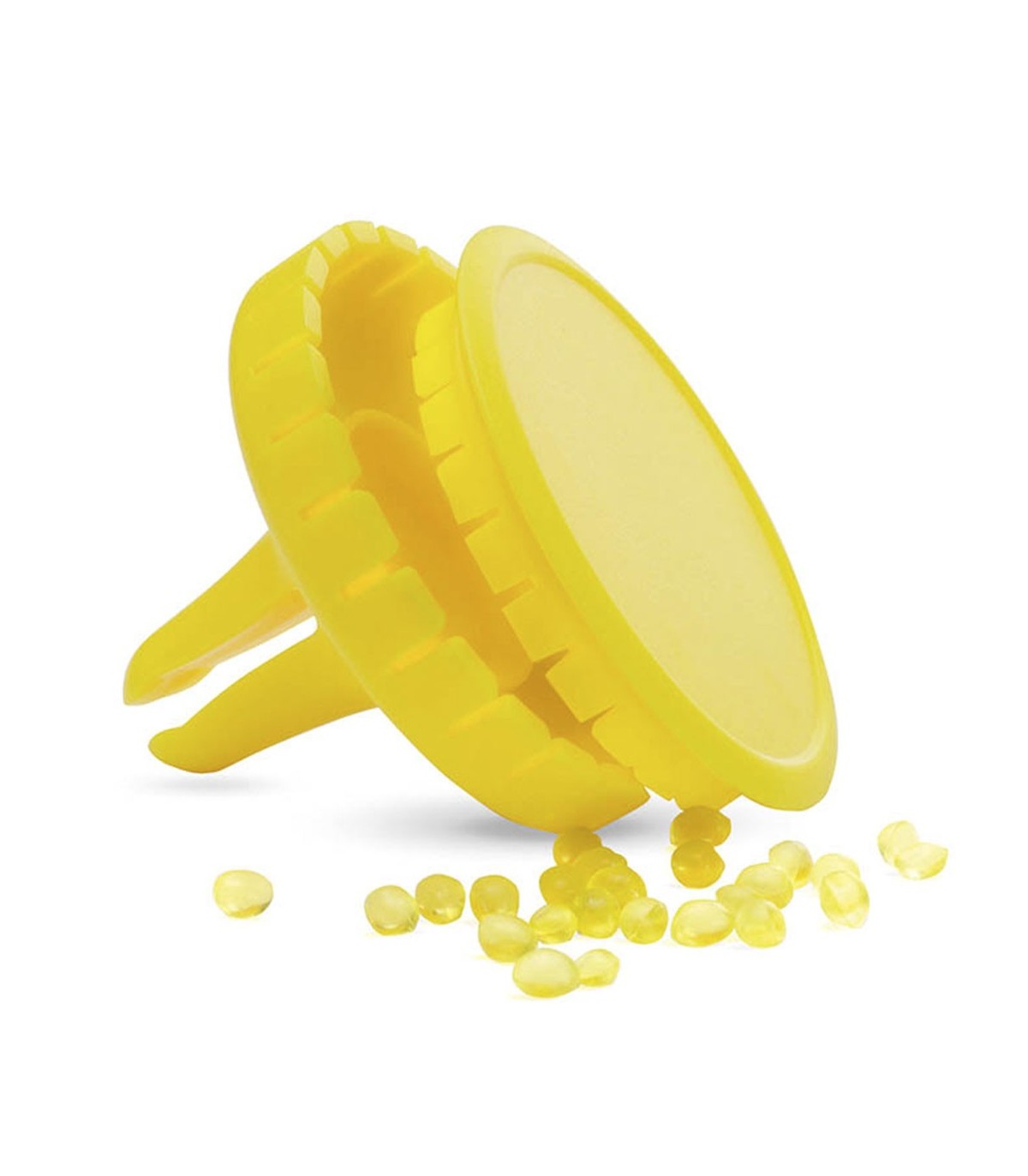 Ambientador aroma limón para rejilla de automóvil. Con cuerpo acabado en divertidos colores y troquelado especial para marcaje en doming/gota de resina.