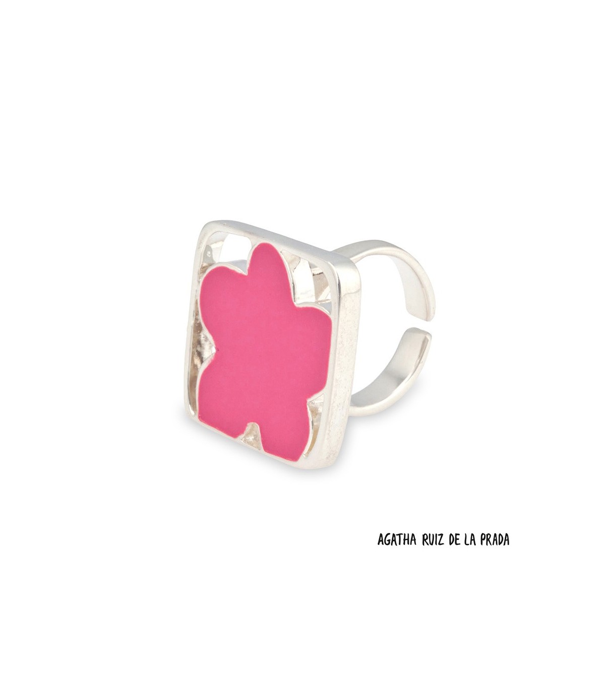 Anillo ajustable de Ágatha Ruiz de la Prada en metal con diseño de la marca esmaltado en fucsia. Presentado en funda de polipiel a juego con logotipo de la marca.