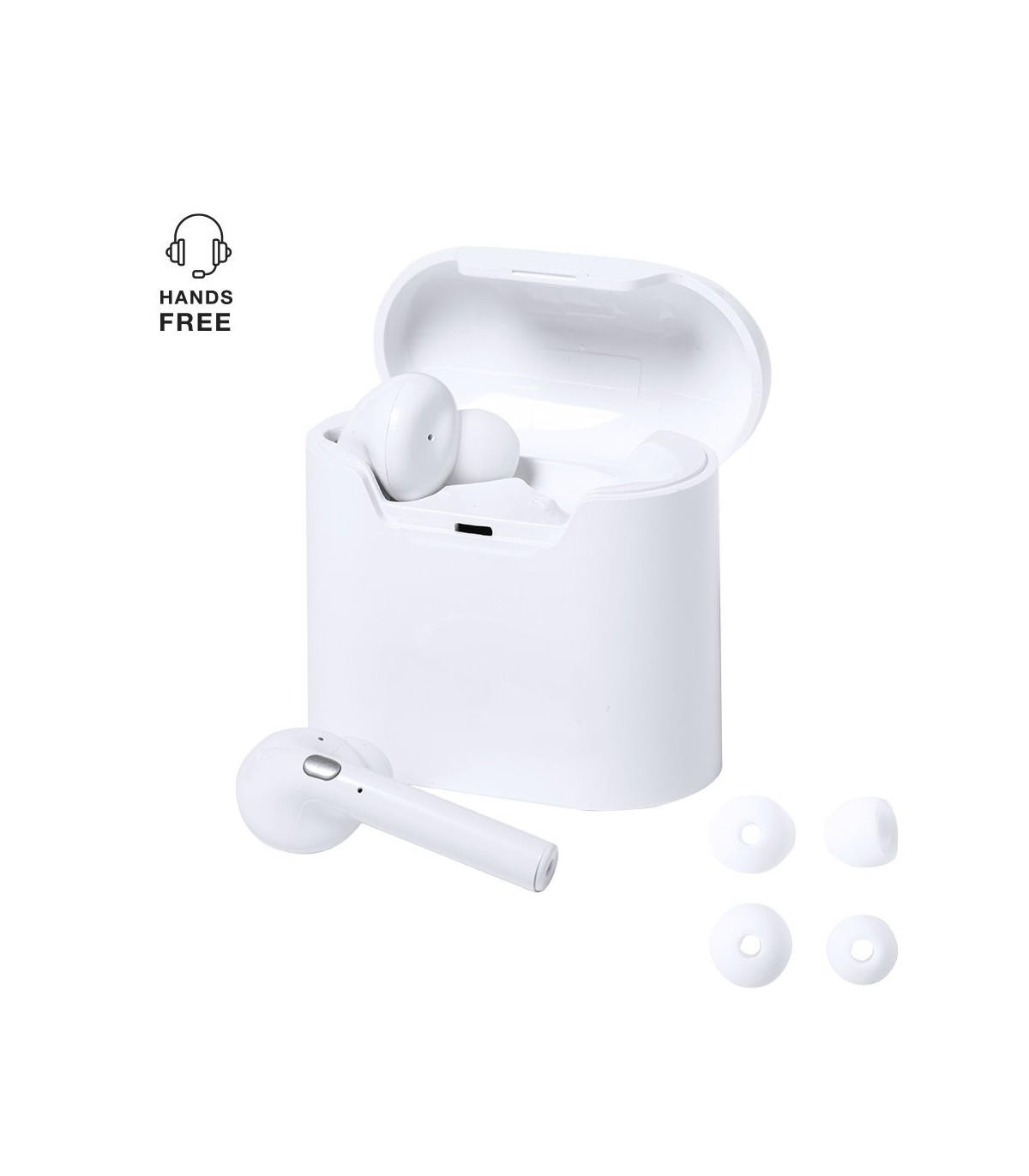 Auriculares intraurales Bluetooth® 5.0 en elegante acabado de color blanco. De diseño ergonómico, incluyen botón de control integrado en el auricular, con base de carga a juego y luz LED de estado de carga. Función manos libres y recargables, con cable micro USB incluido. Presentados en estuche individual de lujo con tapa de bisagra y en atractiva caja de diseño.