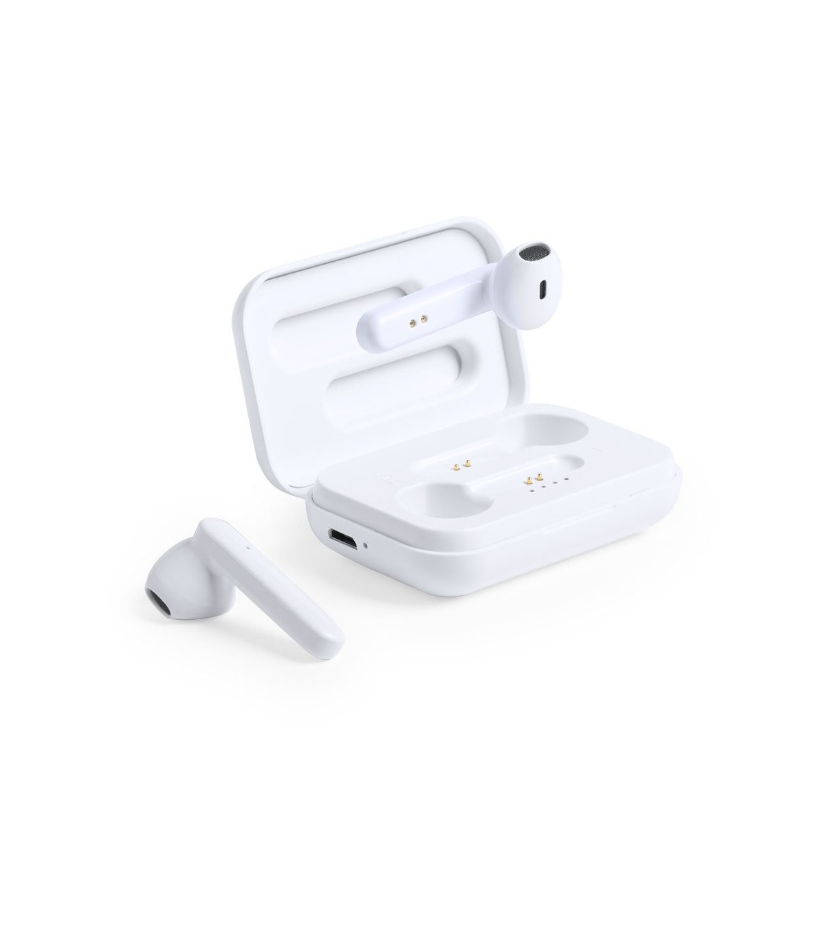 Auriculares intraurales Bluetooth® 5.0. con botón táctil integrado en el auricular, con base de carga a juego. Función manos libres y recargables, con cable micro USB incluido.