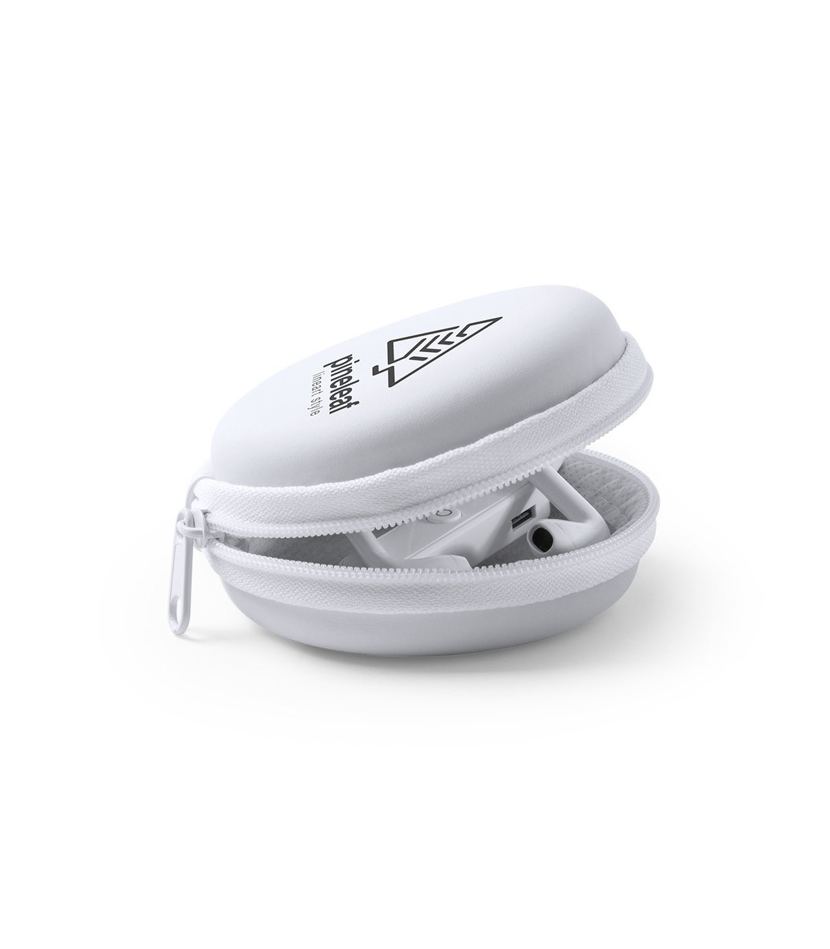 Auriculares intraurales de conexión bluetooth y diseño minimalista en elegante color blanco. De diseño ergonómico, incluyen panel de control integrado en cable y ofrecen función manos libres. Recargables mediante cable mini USB -incluido-. Presentados en resistente estuche individual de polipiel a juego con cierre de cremallera.