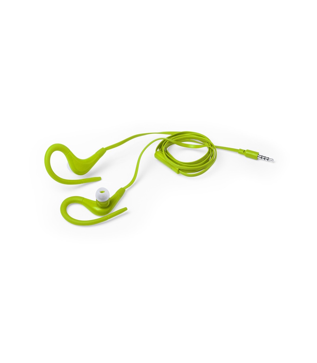 Confortables auriculares deportivos intraurales de desenfadado diseño, conexión jack de 3,5mm y cable en color a juego. Presentados en atractiva caja de diseño.