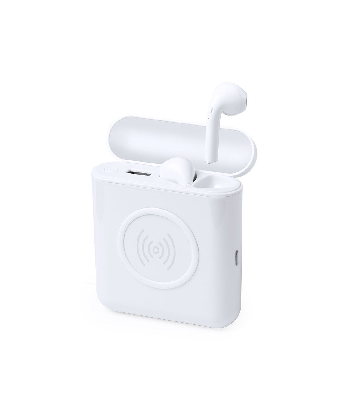 Set de auriculares intraurales con batería auxiliar externa y carga inalámbrica. Auriculares Bluetooth® 4.2 en elegante color blanco, con controles integrados y función manos libres. Base de carga a juego, con batería auxiliar externa de carga inalámbrica o por cable de 5.200 mAh de capacidad y conexión de entrada Tipo C. Recargables mediante puerto USB -cable incluido- y base con tapa de bisagra. Presentados en atractiva caja de diseño. Las capacidades mostradas en todas nuestras baterías auxiliares externas son reales, incorporando todas ellas baterías de grado A y no recicladas, con una vida útil de al menos 500 ciclos de carga y según normativa CE. Además, están fabricadas conforme a los estándares RoHS y en cumplimiento con los siguientes requisitos de seguridad: Sistema de protección contra sobrecarga del power bank. Sistema de protección contra descarga completa que proporciona una mayor durabilidad del power bank. Sistema de bloqueo para evitar cortocircuitos. Sistema