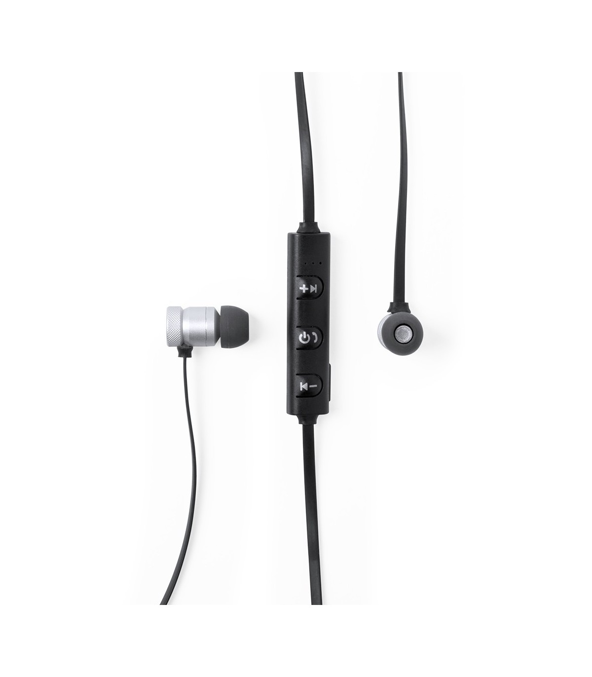 Auriculares intraurales de aluminio e imanes de sujeción. con panel de control a juego integrado en cable y conexión bluetooth, cable de recarga incluido.