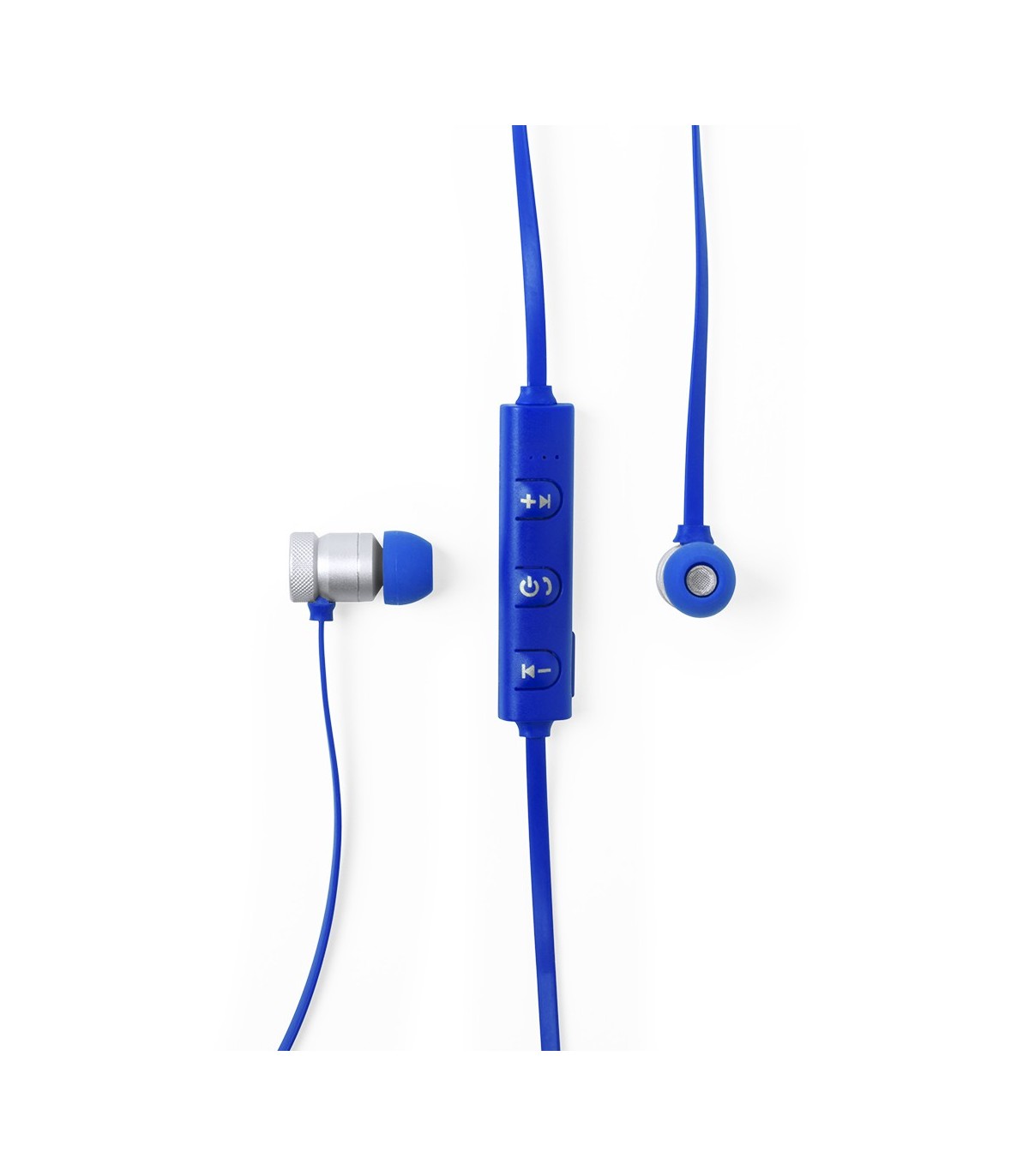 Auriculares intraurales con conexión Bluetooth®, suave cuerpo de aluminio e imanes de sujeción. Disponibles en variada gama de vivos colores, con panel de control a juego integrado en cable, cable de recarga incluido y presentados en atractiva caja de diseño.