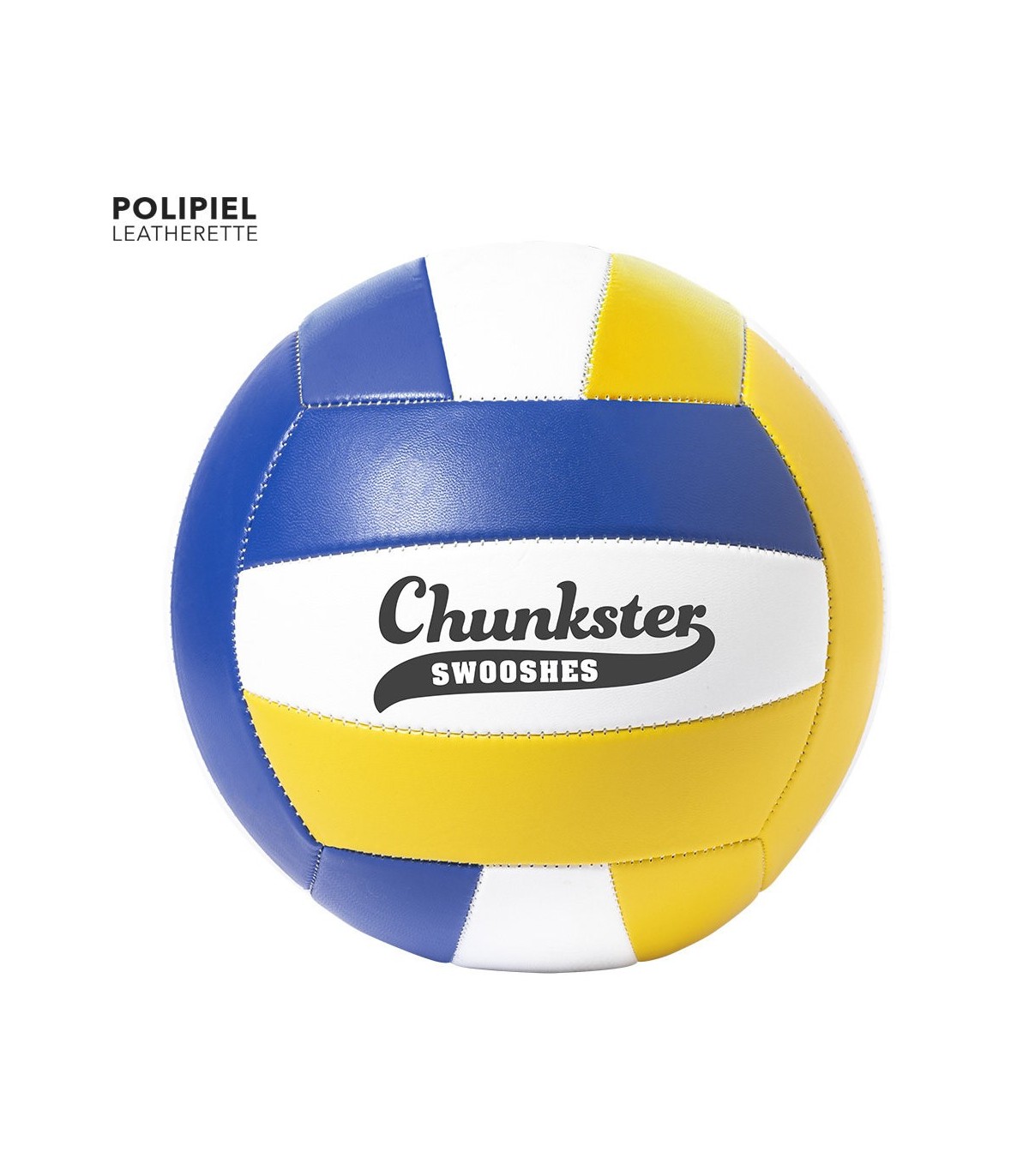 Balones de voleibol para personalizar, hechos en polipiel, tamaño 5. De original diseño tricolor y presentado en bolsa individual.