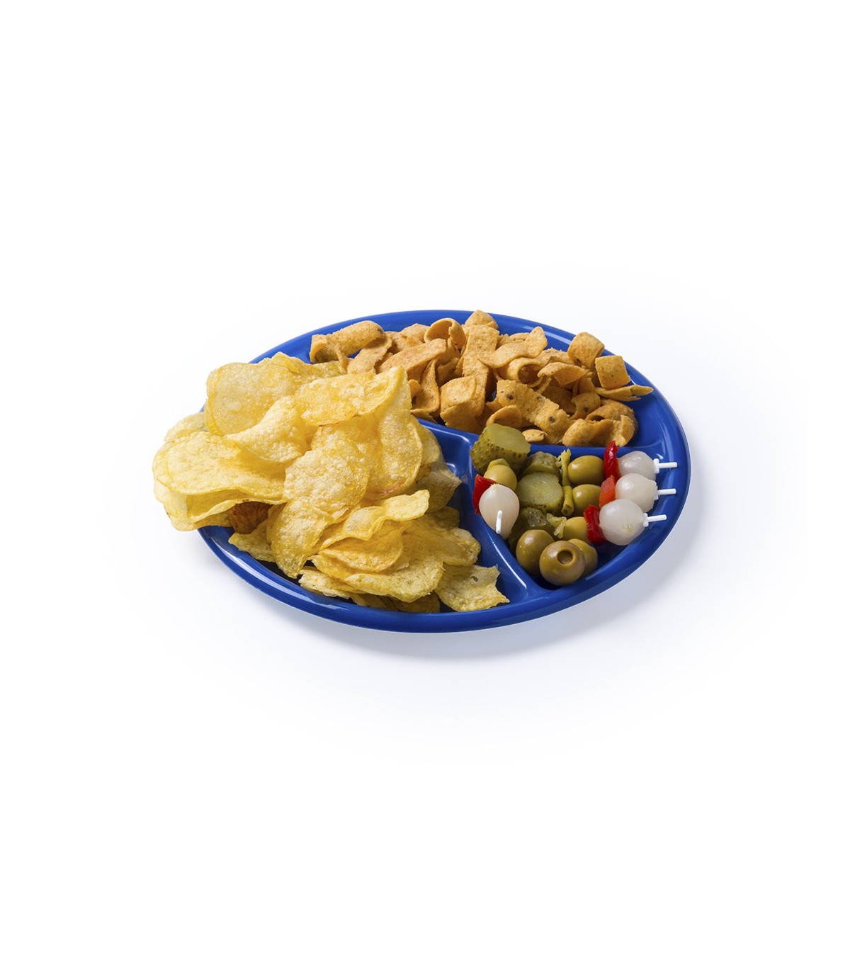 Bandeja con 3 compartimientos para entremeses ideal para regalos de empresa personalizados, en varios colores para elegir y dar como artículos promocionales.