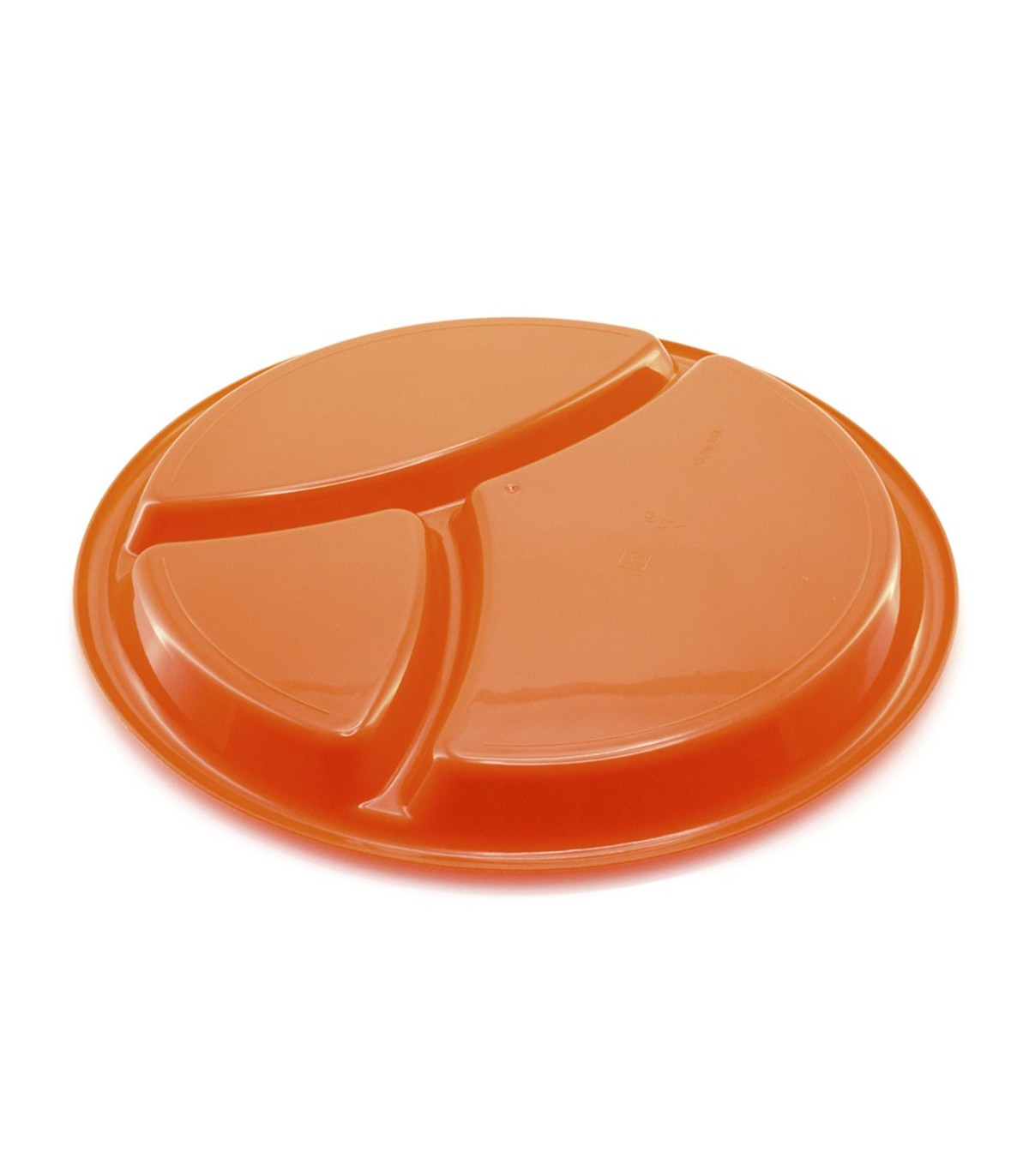 Bandeja de entremeses en resistente PP de variados colores. Con 3 compartimentos.