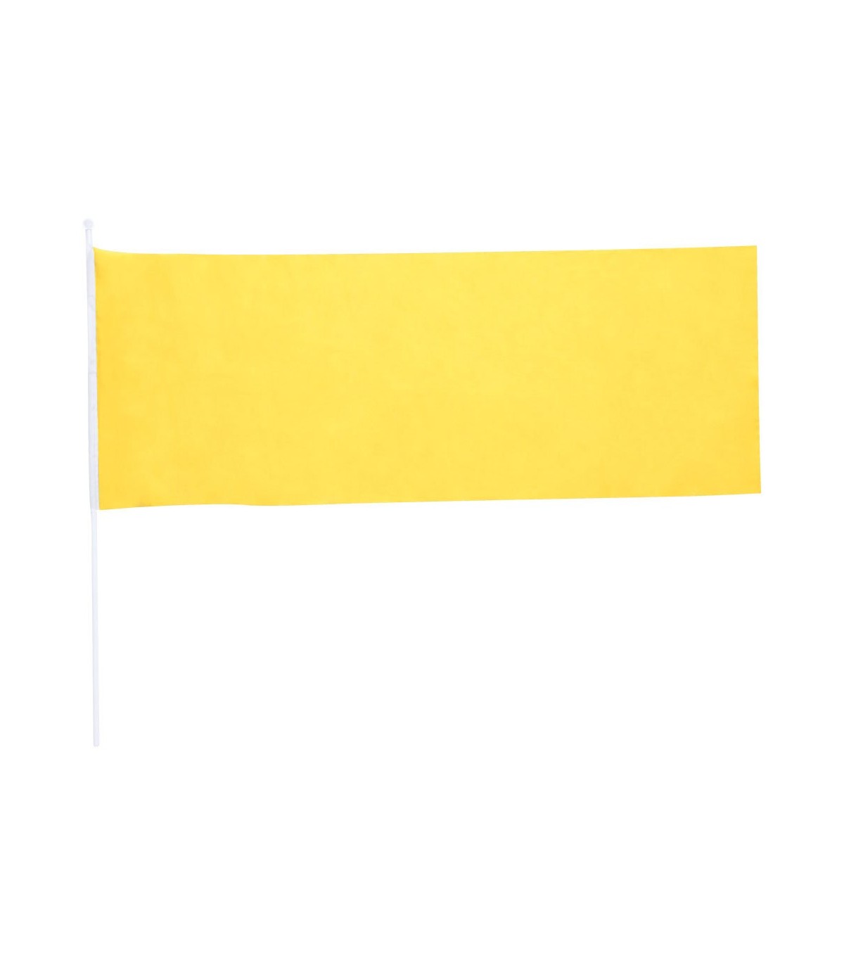 Originales banderines de poliéster de diseño XL -tela de 80x30 cm- en extensa gama de vivos colores. Con asta en color blanco para personalizar y regalar en todo tipo de eventos promocionales.