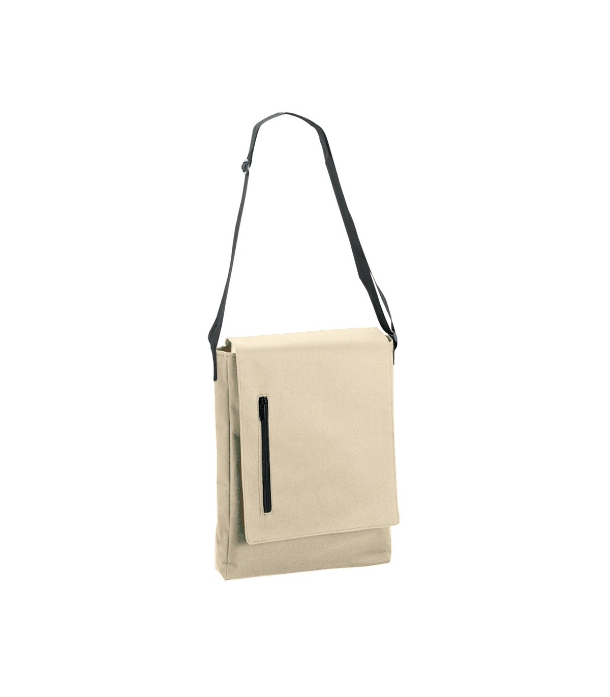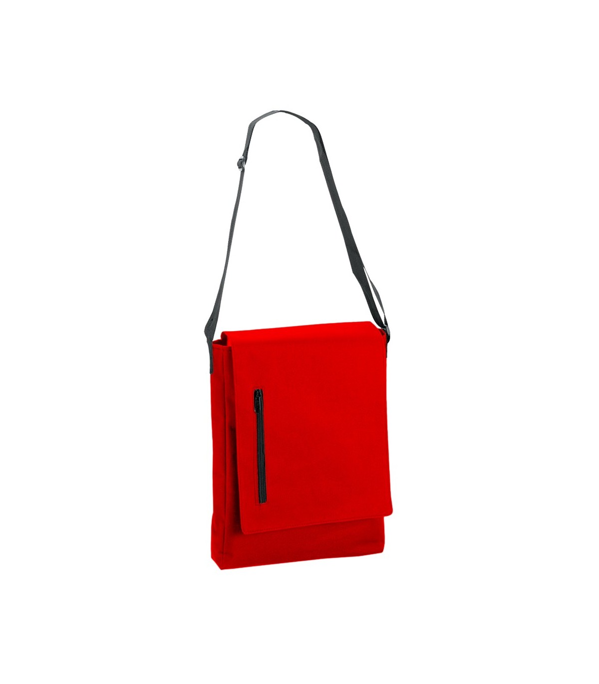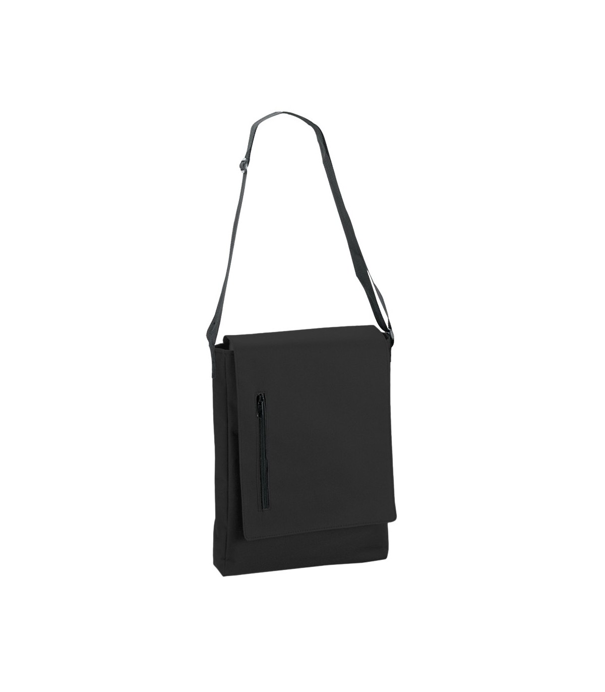 Bandolera de diseño urbano en resistente poliéster 600D con cierre de solapa de velcro y bolsillo exterior con cremallera. Cinta bandolera ajustable.
