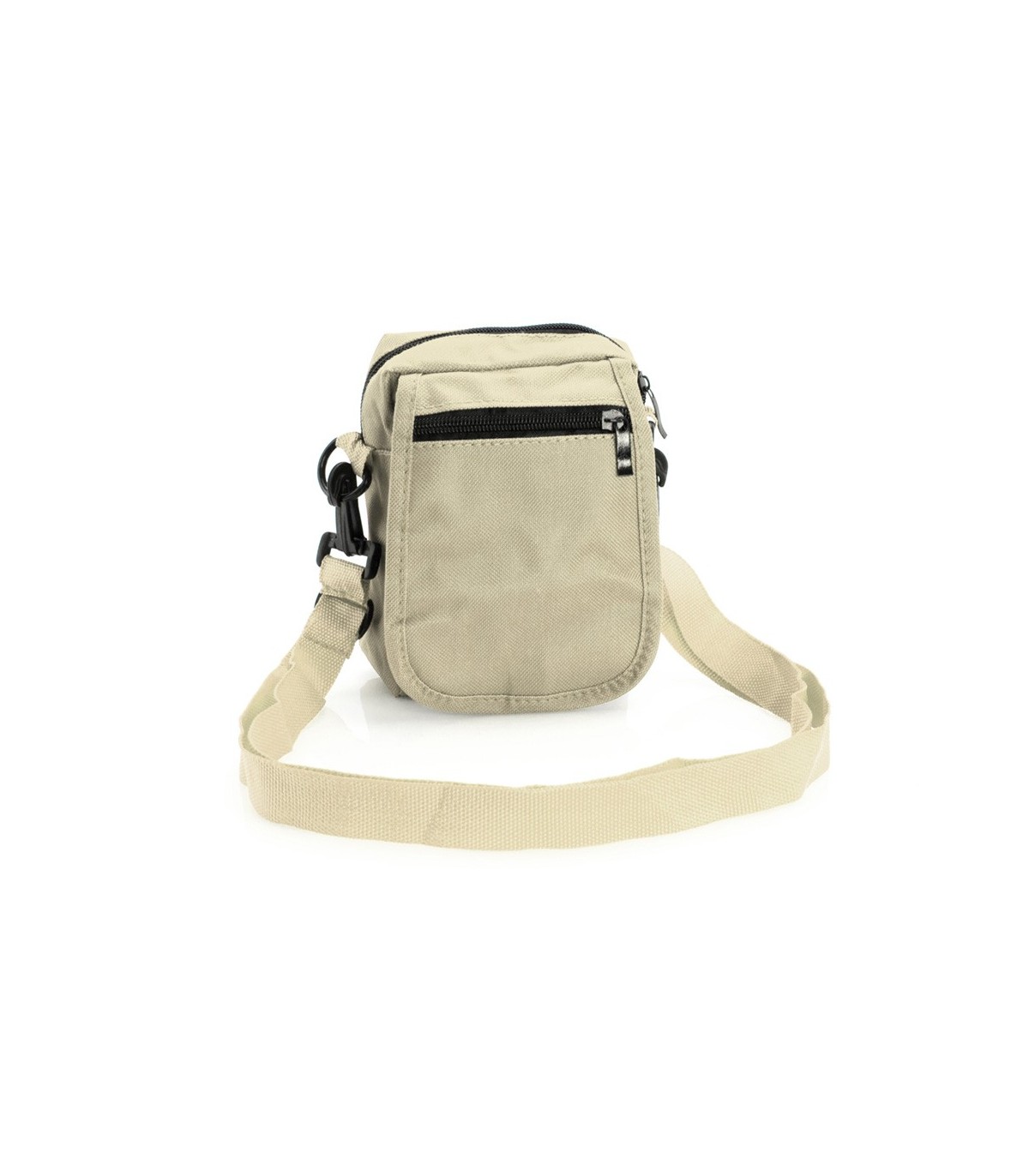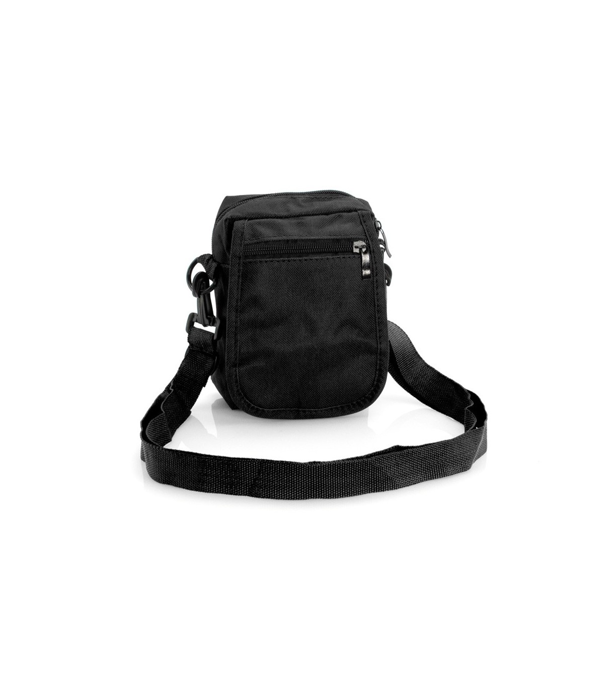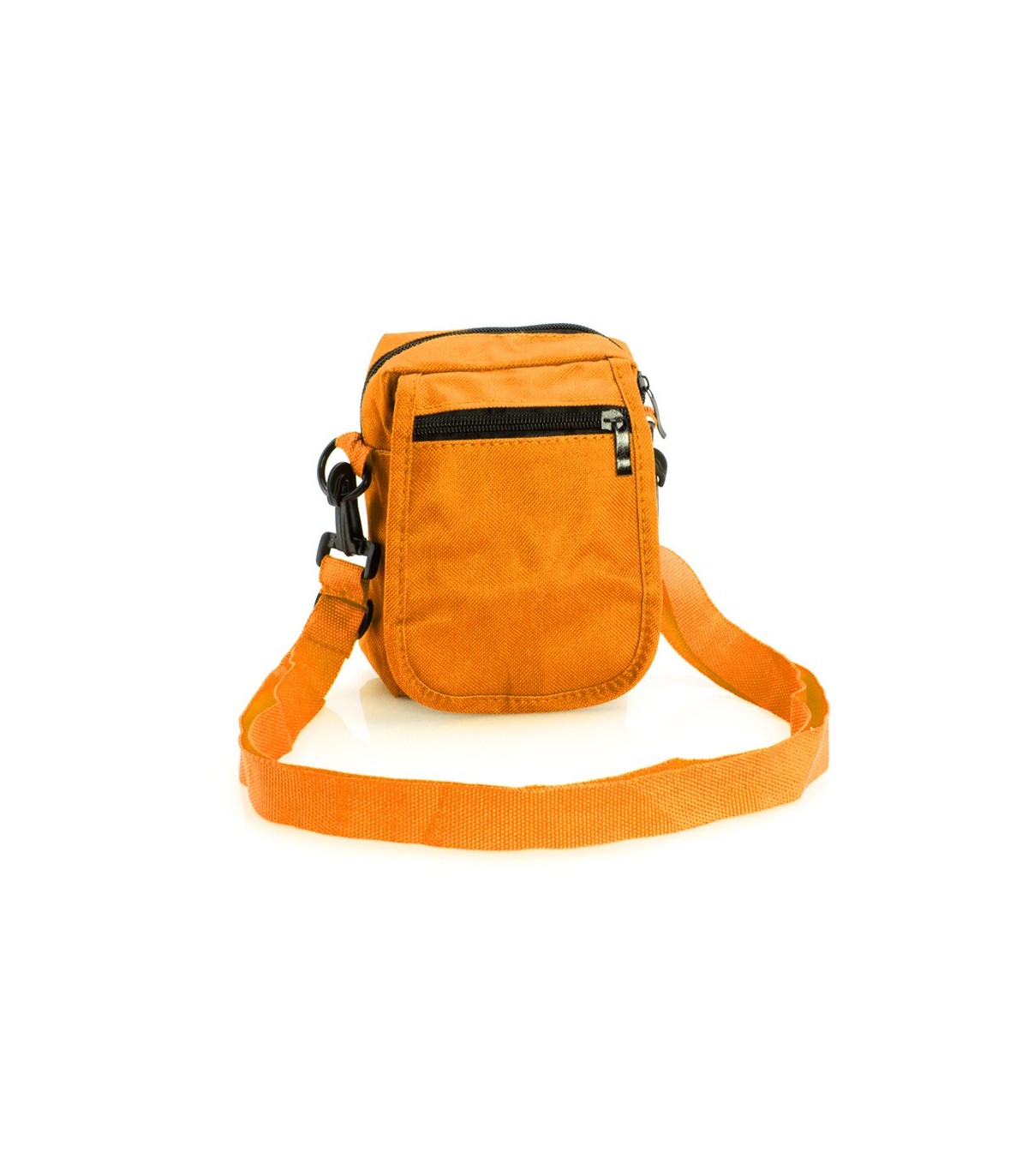 Mini bandolera todo terreno en resistente poliéster 600D de variados colores y con cierre de cremallera. Solapa con cierre de velcro y bolsillo de cremallera, accesorio para cinturón en parte posterior y cinta para hombro a juego con cierre de mosquetón ajustable.
