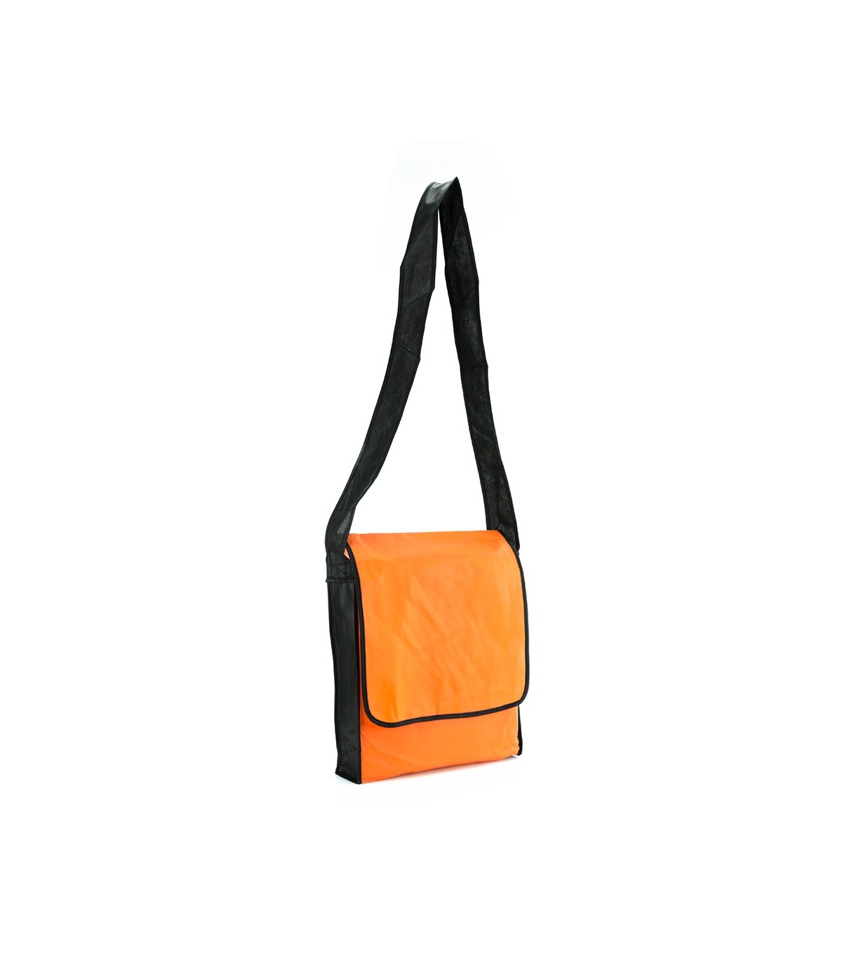 Bandolera de gran tamaño en non-woven, de diseño bicolor en variados colores y cierre de solapa de velcro. Con cómoda cinta para hombro.