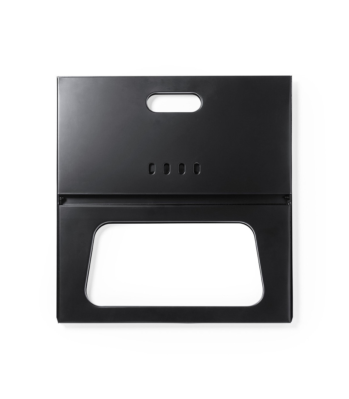 Barbacoa plegable elaborada en resistente metal de acabado en negro. Con cómodas asas y parrilla, de fácil plegado y tamaño compacto. Presentada en atractiva caja individual de diseño.