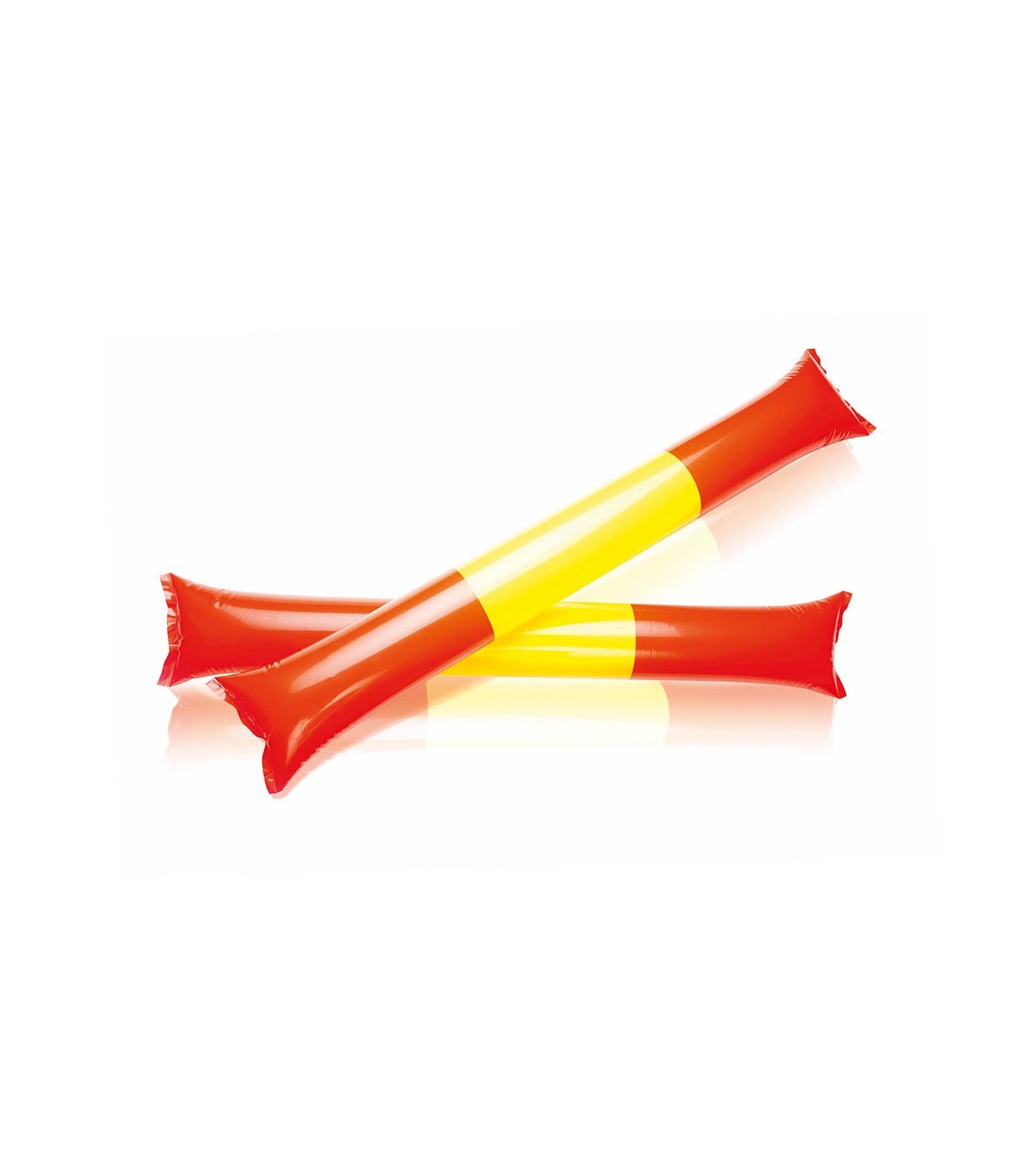 Par de bastones sticks/aplaudidores en resistente y ruidoso material LDPE de diseño España. Reutilizables y con válvula de inflado incluida.