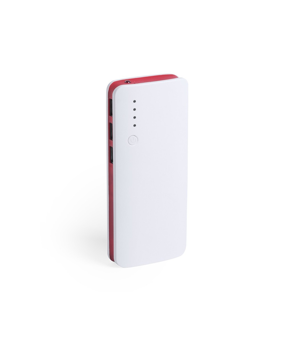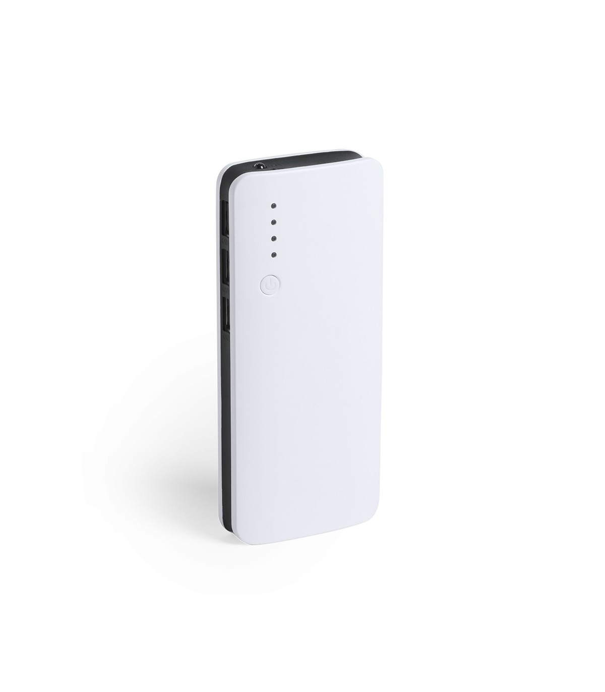 Batería auxiliar externa de gran capacidad de carga -10.000 mAh-. Con salida USB triple para cargar hasta 3 dispositivos de forma simultánea, ledes indicadores de estado de carga, diseño curvado con cuerpo en color blanco y laterales en vivos colores, con amplia superficie de marcaje. Presentada en atractiva caja de diseño. Las capacidades mostradas en todas nuestras baterías auxiliares externas son reales, incorporando todas ellas baterías de grado A y no recicladas, con una vida útil de al menos 500 ciclos de carga y según normativa CE. Además, están fabricadas conforme a los estándares RoHS y en cumplimiento con los siguientes requisitos de seguridad: Sistema de protección contra sobrecarga del power bank. Sistema de protección contra descarga completa que proporciona una mayor durabilidad del power bank. Sistema de bloqueo para evitar cortocircuitos. Sistema de transferencia de carga constante, acorde con la capacidad del dispositivo de destino.
