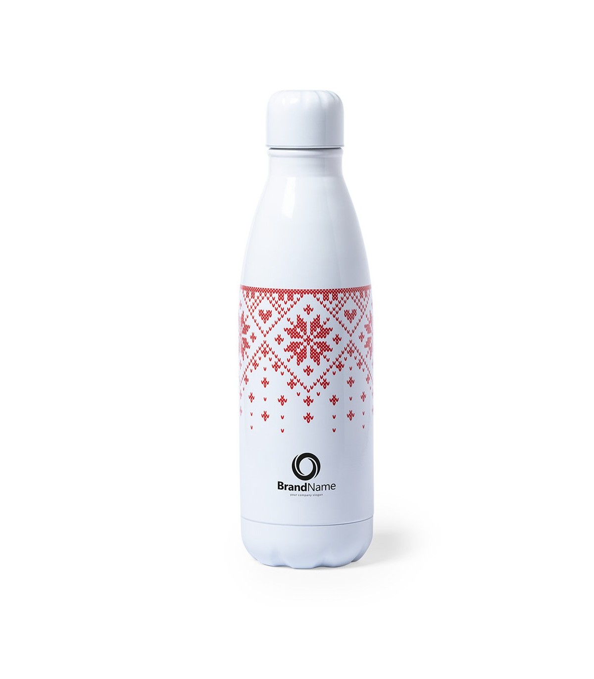 Bidón de 790ml de capacidad con cuerpo de acero inox brillo y diseño bicolor de navidad. Con tapón de seguridad y presentado en atractiva caja de diseño.