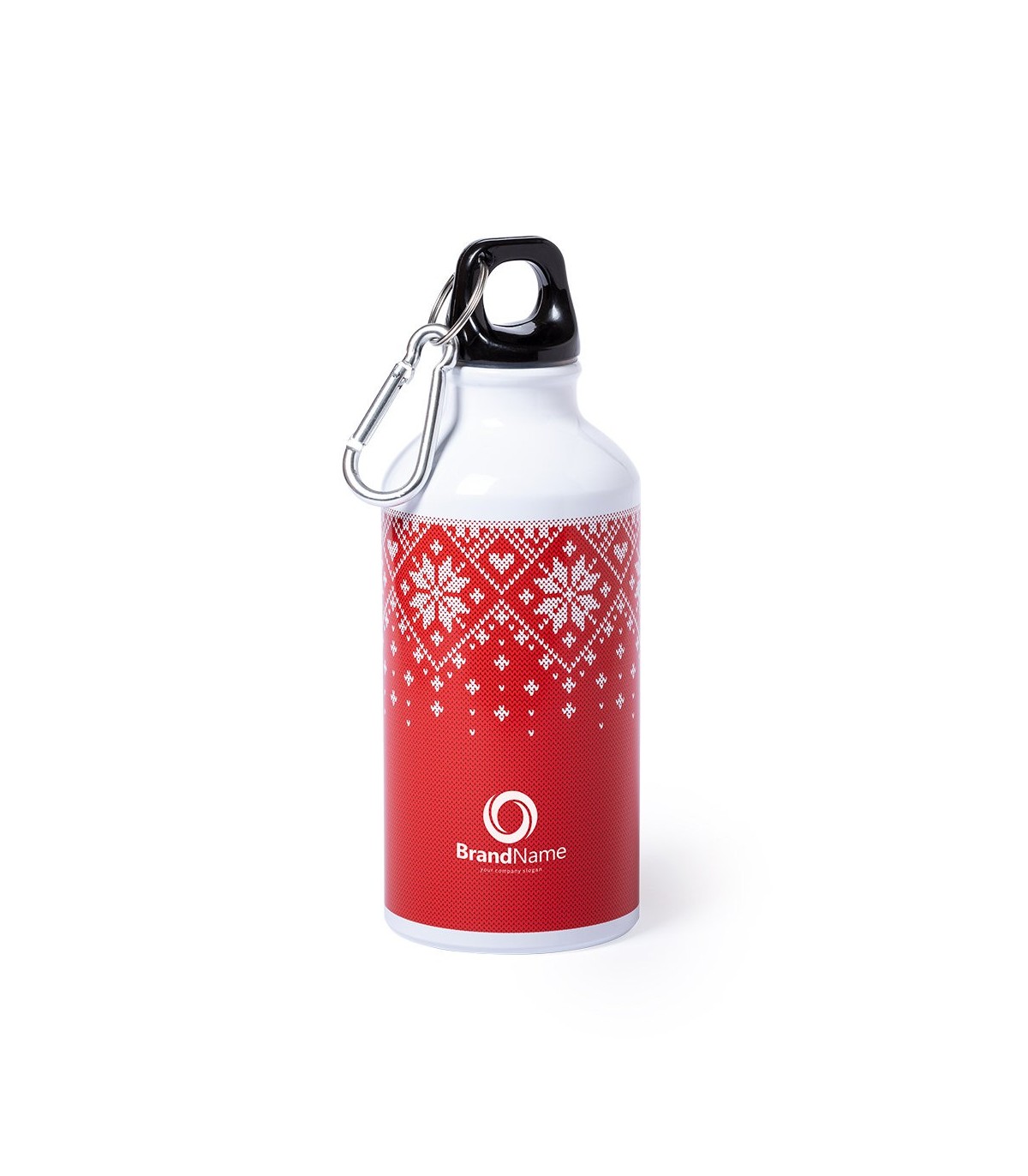 Bidón de 400ml de capacidad con cuerpo de acabado aluminio, en diseño bicolor de navidad. Con tapón de seguridad a rosca y mosquetón metálico de transporte. Presentado en atractiva caja de diseño.