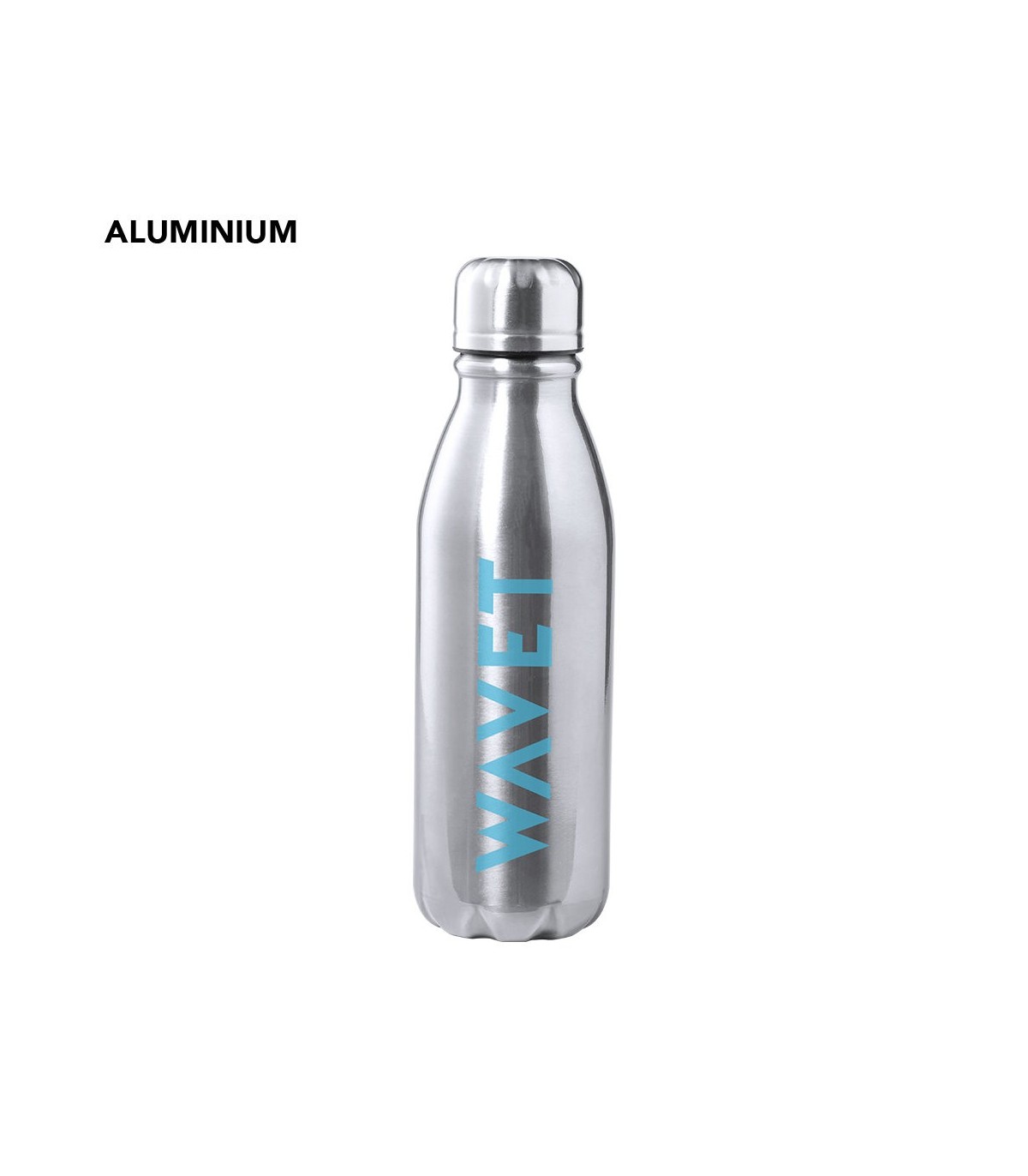 Bidón de aluminio de 550ml de acabado brillo. Disponibles en varios colores para personalizar satinados, libre de BPA. presentado individualmente en caja de diseño.