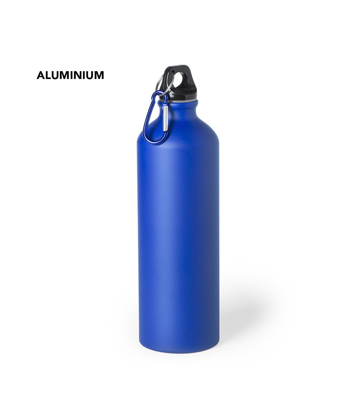 Bidones para el agua con capacidad de 800ml, fabricado en aluminio en varios colores, con tapón a rosca de seguridad y mosquetón metálico para transportar.
