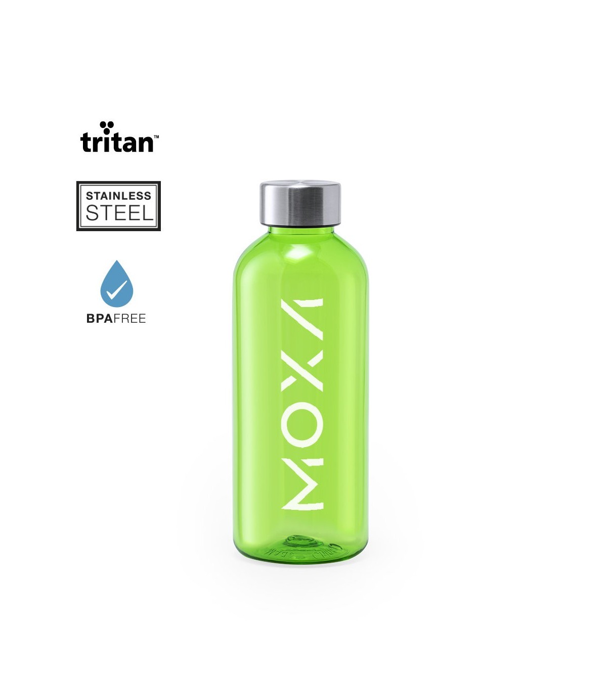 Bidón de 600ml de capacidad. Libre de BPA, con cuerpo fabricado en tritán transparente y de alta resistencia al calor. Tapón a rosca en acero inox. Disponibles en varios colores para personalizar.
