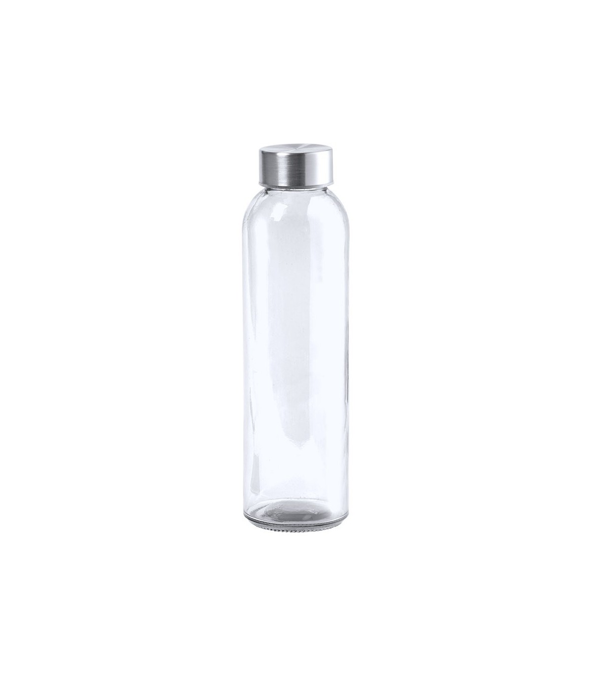 Bidón de cristal de 500ml de capacidad, con cuerpo de acabado transparente en material libre de BPA y tapón a rosca en acero inox. Disponibles en varios colores para personalizar.