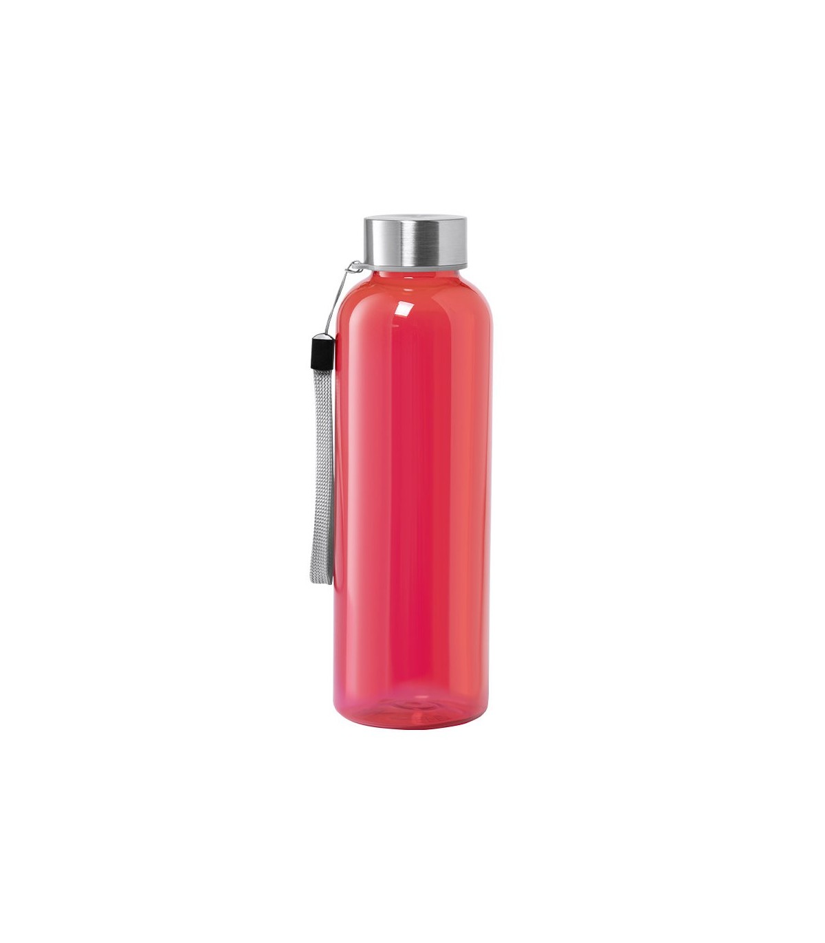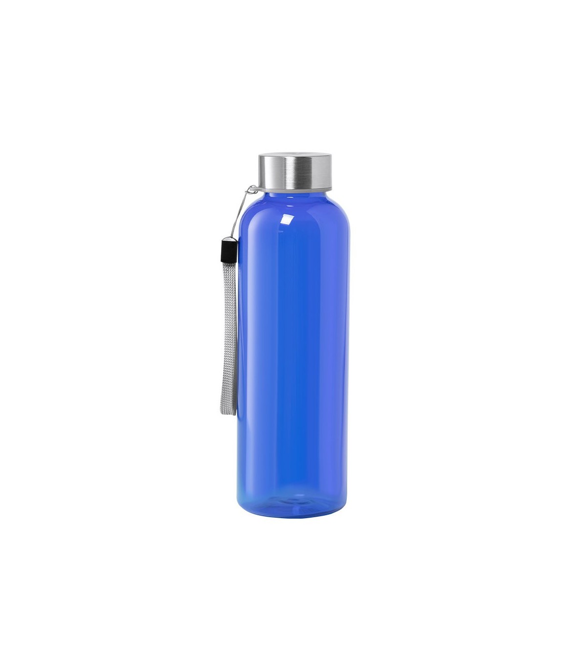 Bidón de 600ml de capacidad. Libre de BPA, con cuerpo de RPET elaborado a partir de plástico reciclado para así fomentar la reutilización de residuos plásticos y contribuir a la sostenibilidad del planeta. Tapón a rosca en acero inox, con cordón de transporte. Disponibles en varios colores para personalizar.