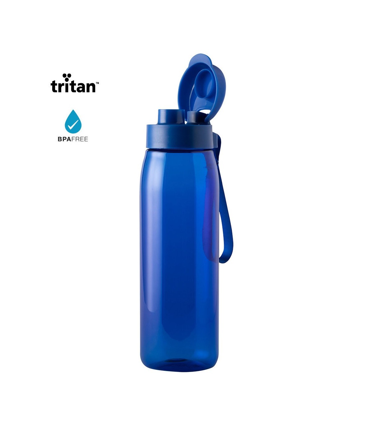 Bidón en alta calidad y de gran capacidad -820 ml-, con cuerpo acabado en material tritán de resistencia al calor (70ºC) y libre de BPA. Acabado en colores transparentes, con tapón dosificador de seguridad a juego y cinta de transporte. Disponibles en varios colores para personalizar.
