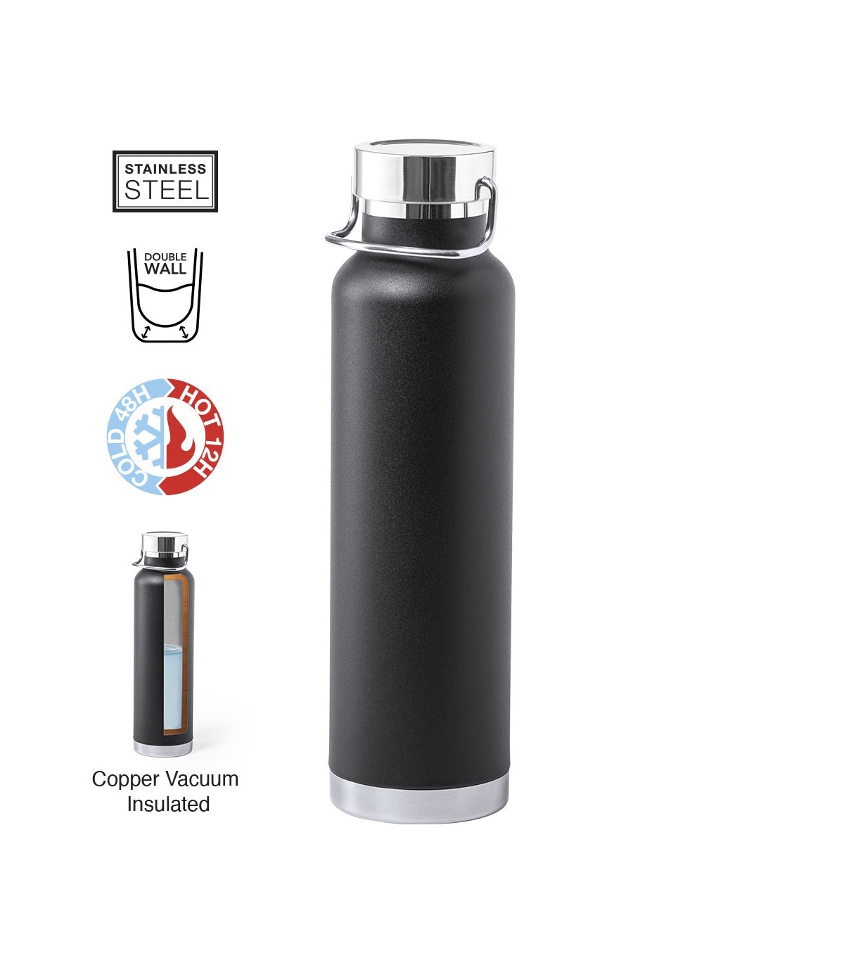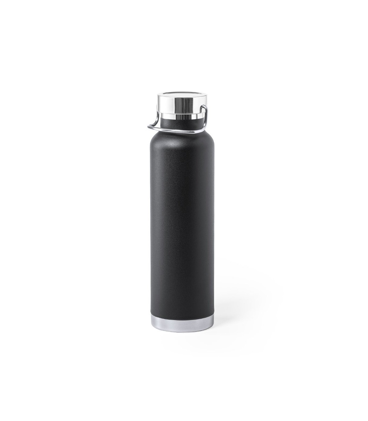 Bidones térmicos con aislamiento, hecho en acero inoxidable y en varios colores metalizados, con capacidad de 650 ml, ideales para regalar con tu logo impreso.