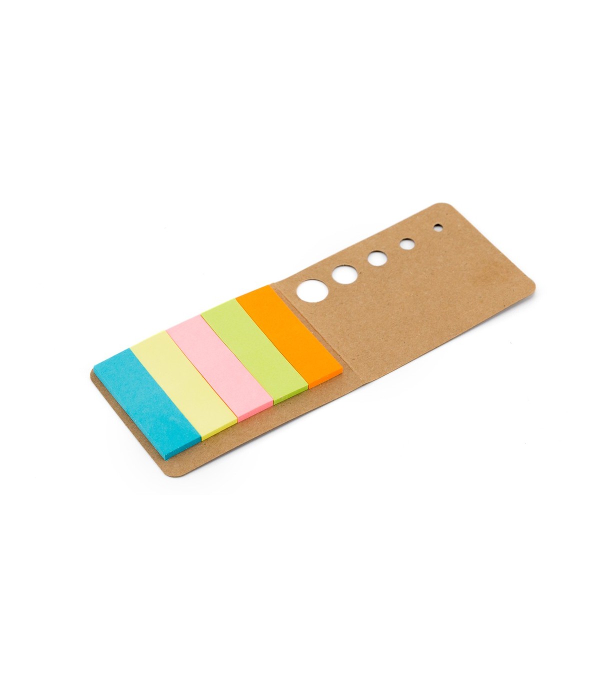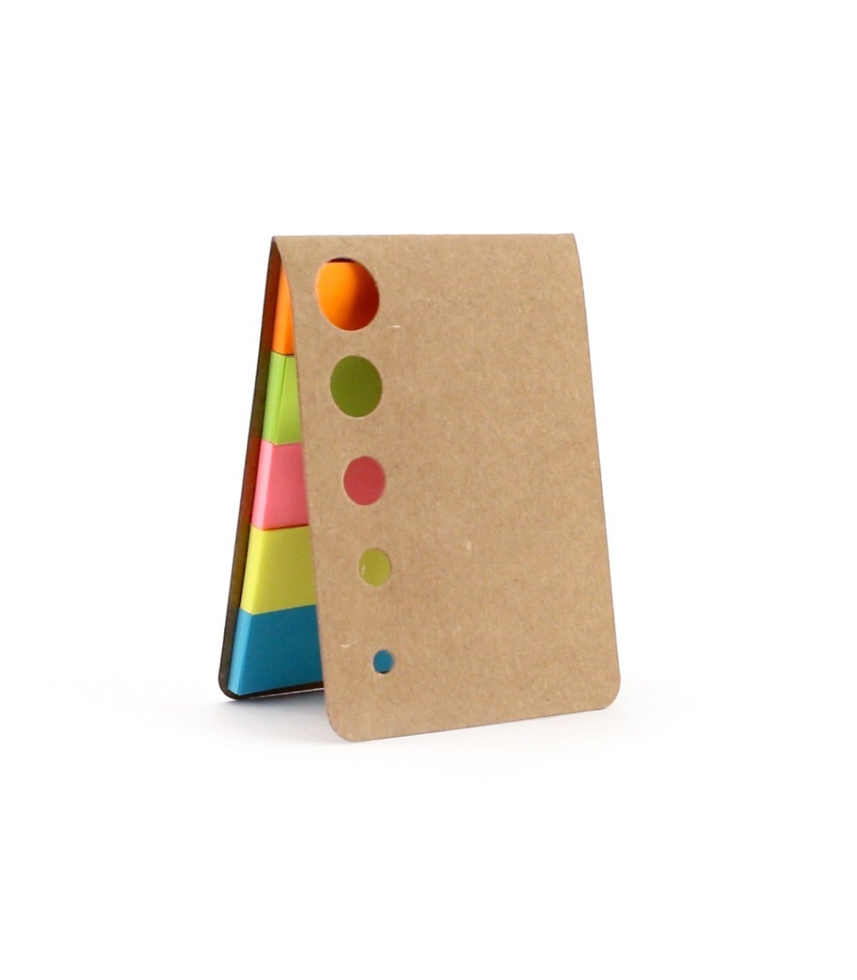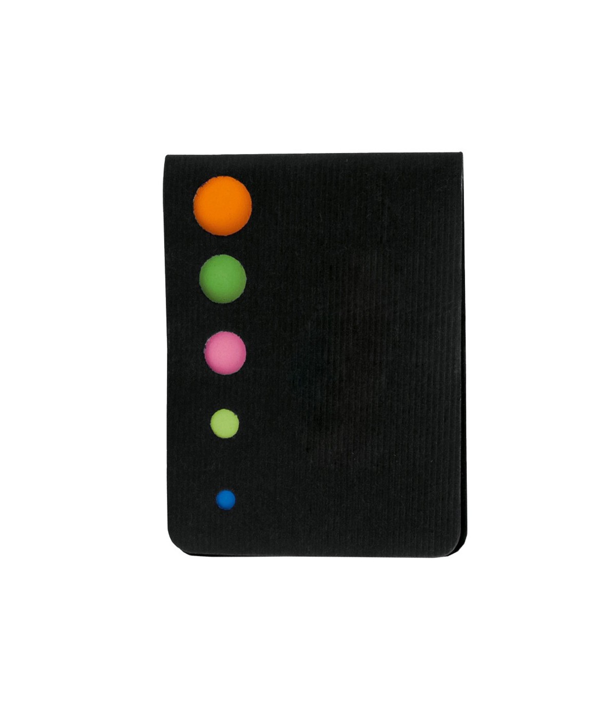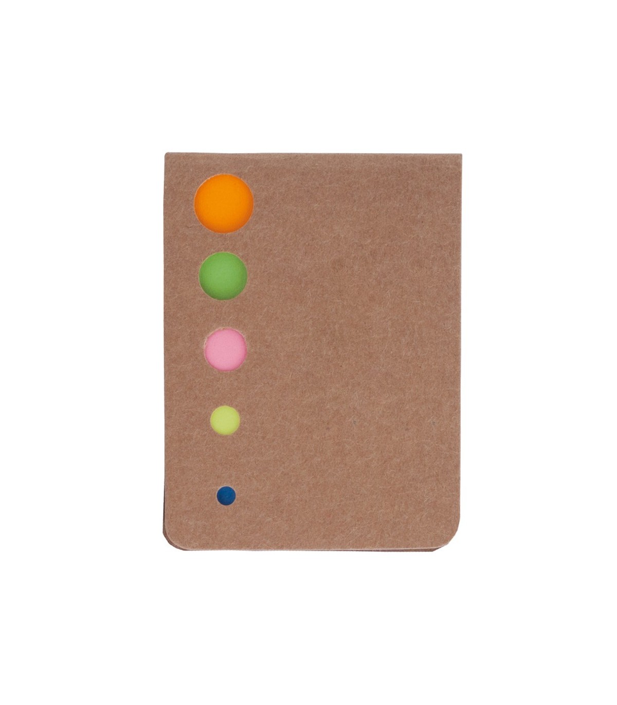 Bloc de notas adhesivas con tapa troquelada de suave tacto acabada en cartón reciclado. Con 100 mini notas adhesivas.