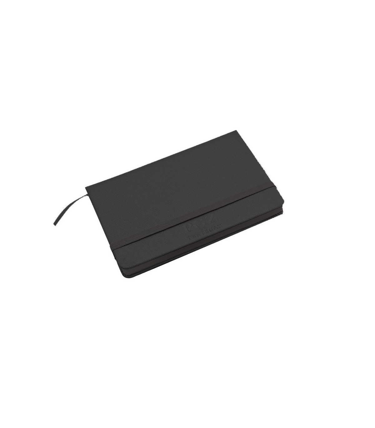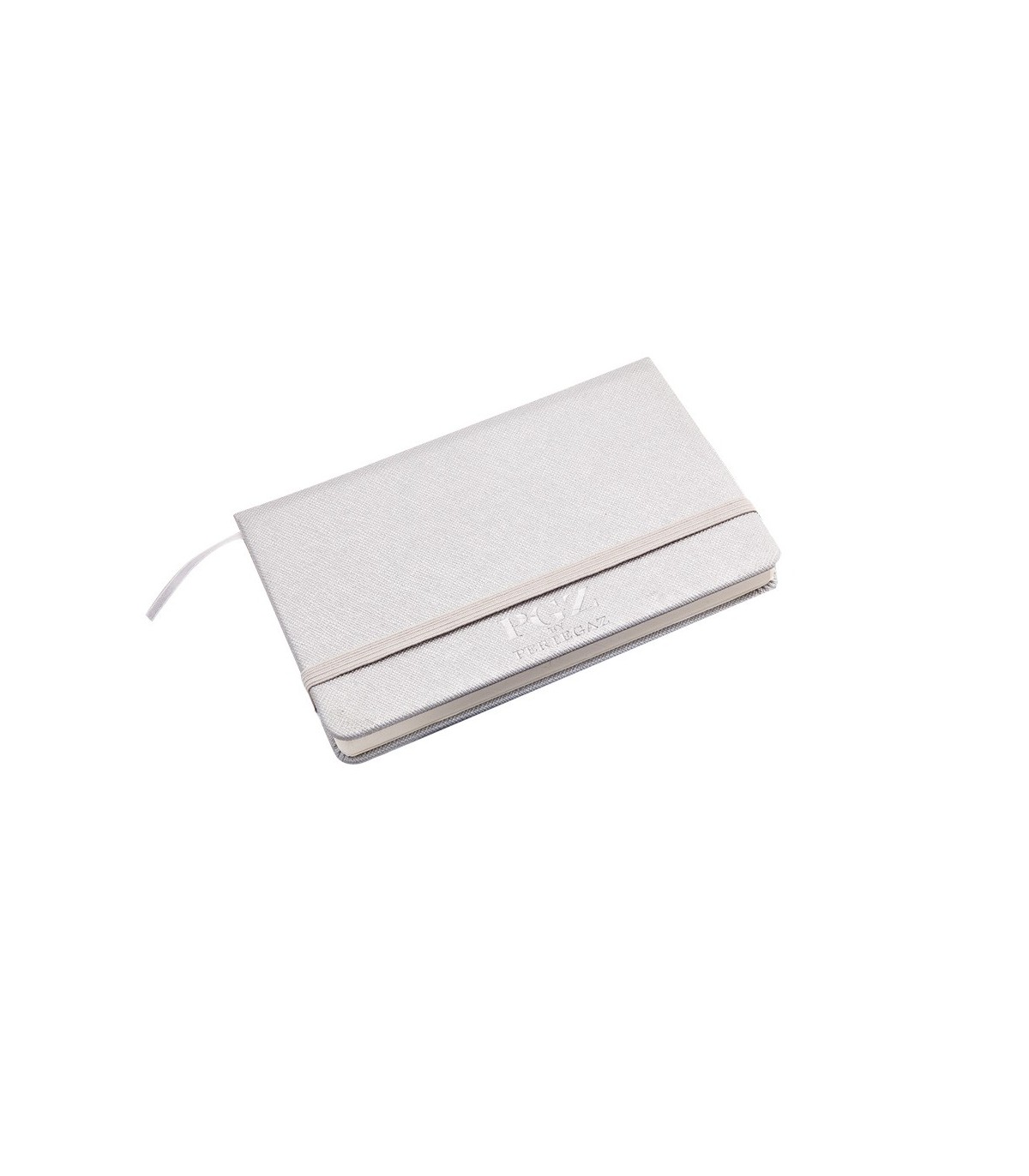 Bloc de notas de Pertegaz con tapas de suave tacto y elegante acabado en polipiel. De 80 hojas lisas, con elástico de sujeción y marcapáginas de tela a juego. Logotipo de la marca grabado en portada.