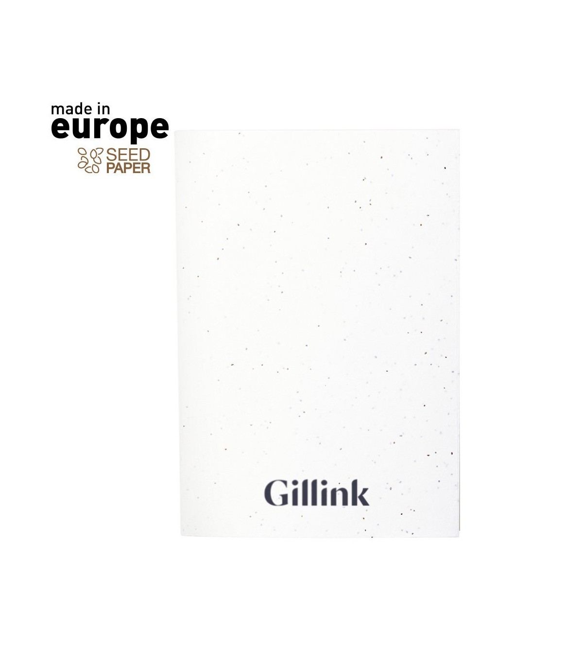 Bloc de notas de fabricación ecológica en tamaño A5, con cubiertas elaboradas en papel reciclable y degradable. Incluye semillas de flores silvestres, convirtiéndolo así en papel plantable al final de su vida útil. Interior con 40 hojas lisas. Flores silvestres en colores surtidos, con instrucciones de plantado en el interior y distintivo Made in Europe.