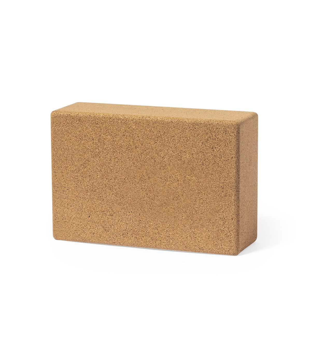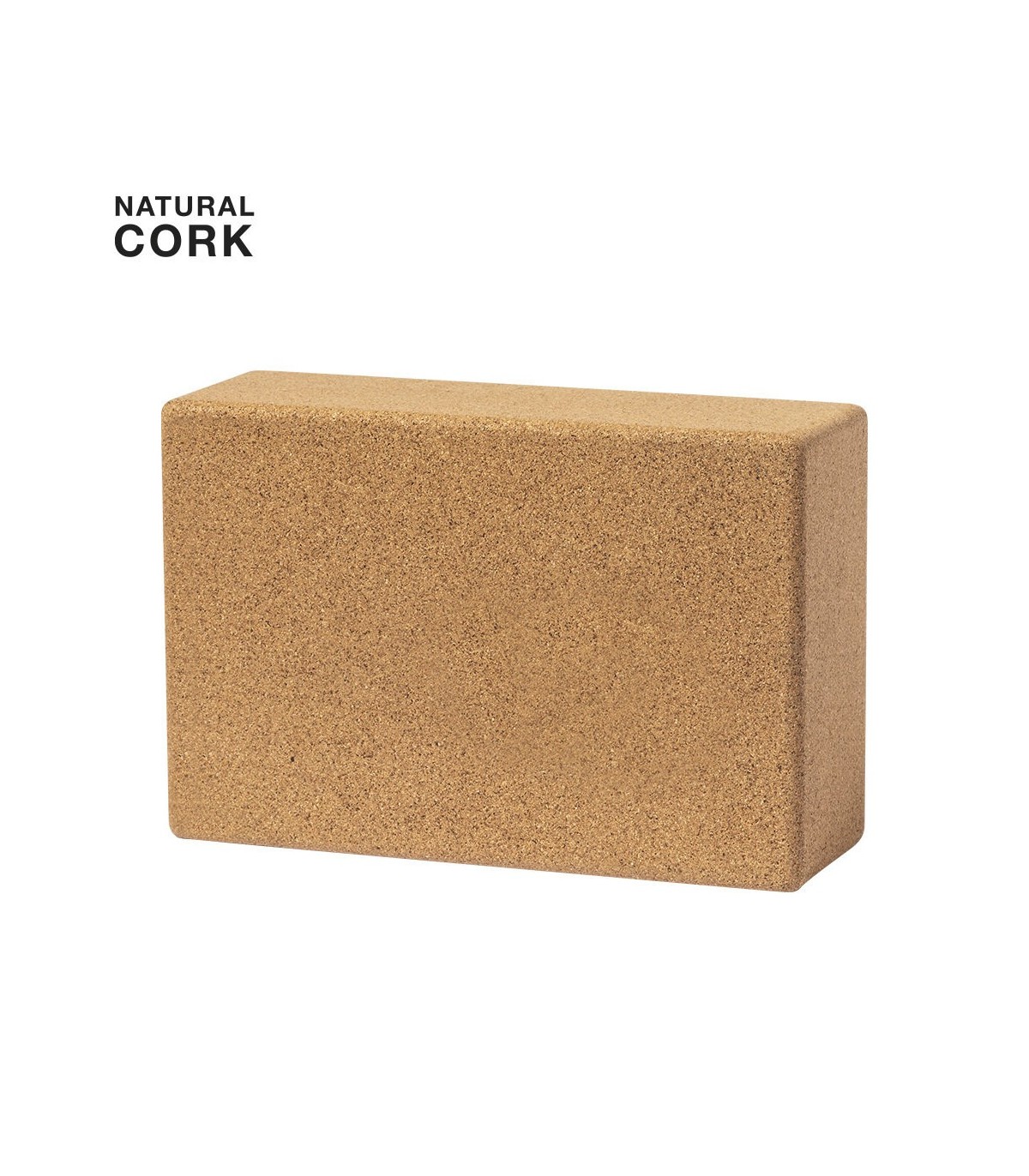 Bloque deportivo para yoga de fabricación ecológica. Fabricado en resistente corcho natural y presentado en atractiva funda individual de diseño eco, con ilustraciones de ejercicios.