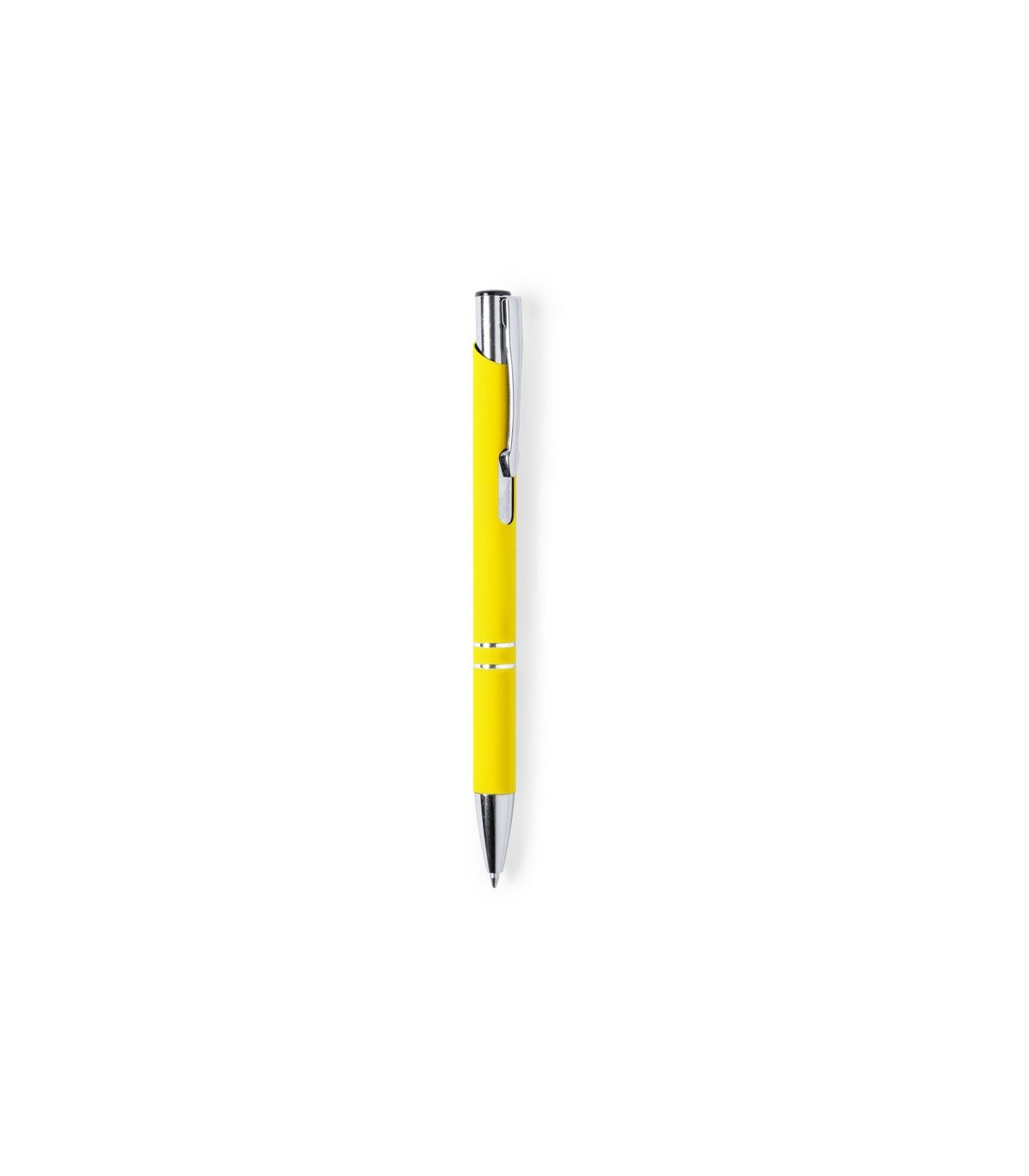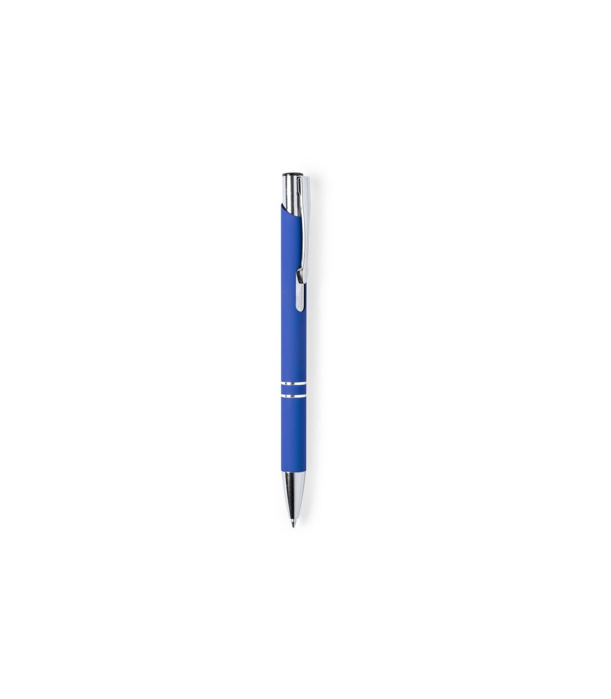 Original bolígrafo de mecanismo pulsador en elegante diseño bicolor. Con cuerpo troquelado de aluminio en tacto goma de acabado mate.Disponible en variada gama de colores, con cartucho jumbo y tinta azul.