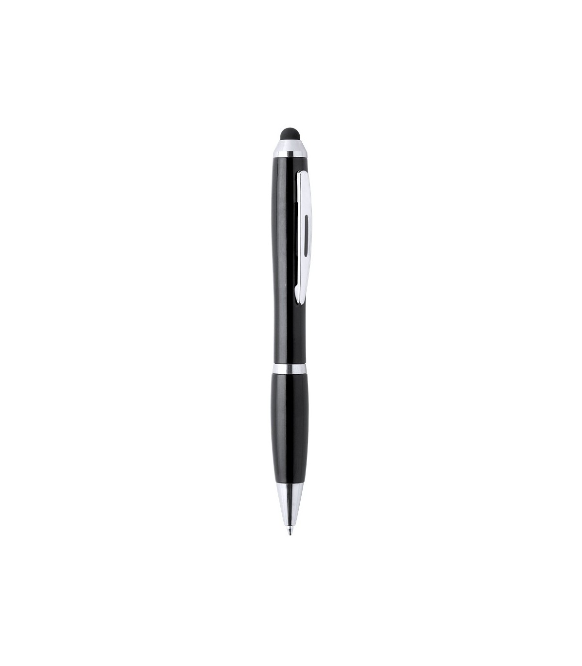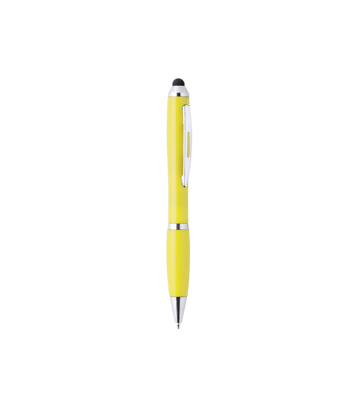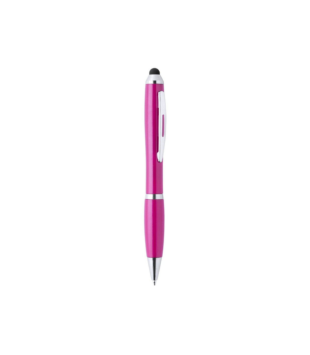 Bolígrafo puntero de colorido diseño, de apertura giratoria y cuerpo en llamativos colores brillantes a juego con la empuñadura. Con detalles cromados y clip metálico. Cartucho jumbo y con escritura en tinta azul.